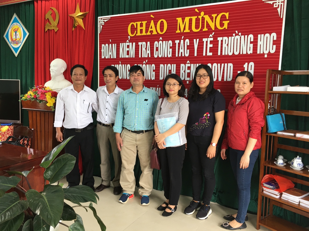 Ngày 04 tháng 03 năm 2020, Khoa Sức khoẻ môi trường - Y tế trường học – Trung tâm Kiểm soát bệnh tật tỉnh phối hợp cùng với Phòng Giáo dục và Đào tạo, TTYT huyện Quảng Điền kiểm tra công tác y tế trường học, công tác phòng, chống dịch bệnh COVID-19 tại trường Mầm non Quảng Thái, trường Tiểu học Quảng Thái huyện Quảng Điền.
