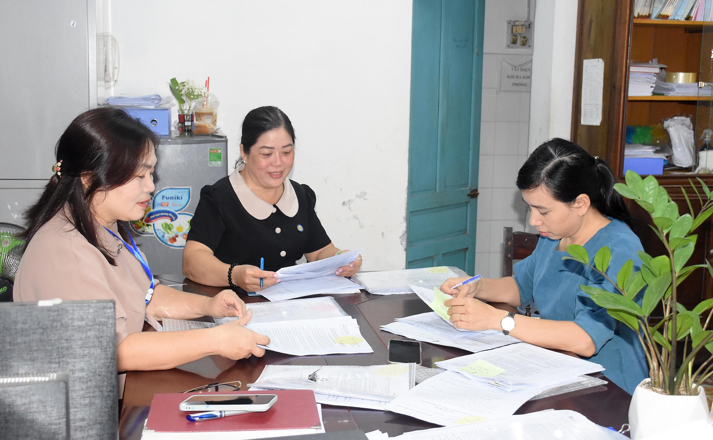 Các thành viên Đoàn công tác kiểm tra, đánh giá hồ sơ lưu trữ các hoạt động y tế năm 2024 đã được triển khai tại TTYT thành phố Huế.