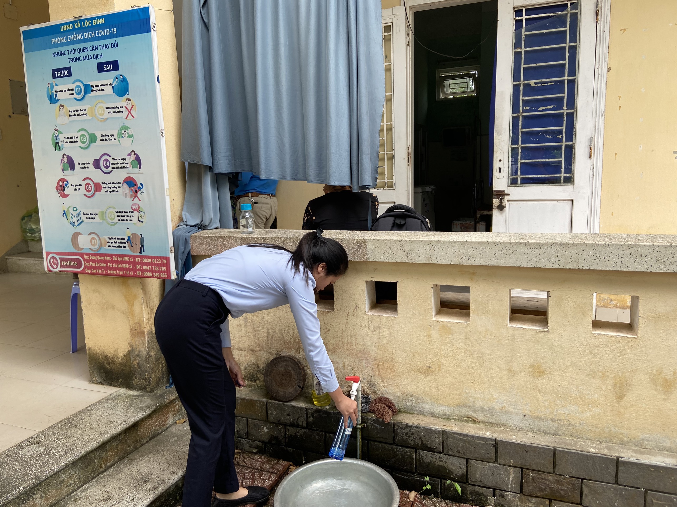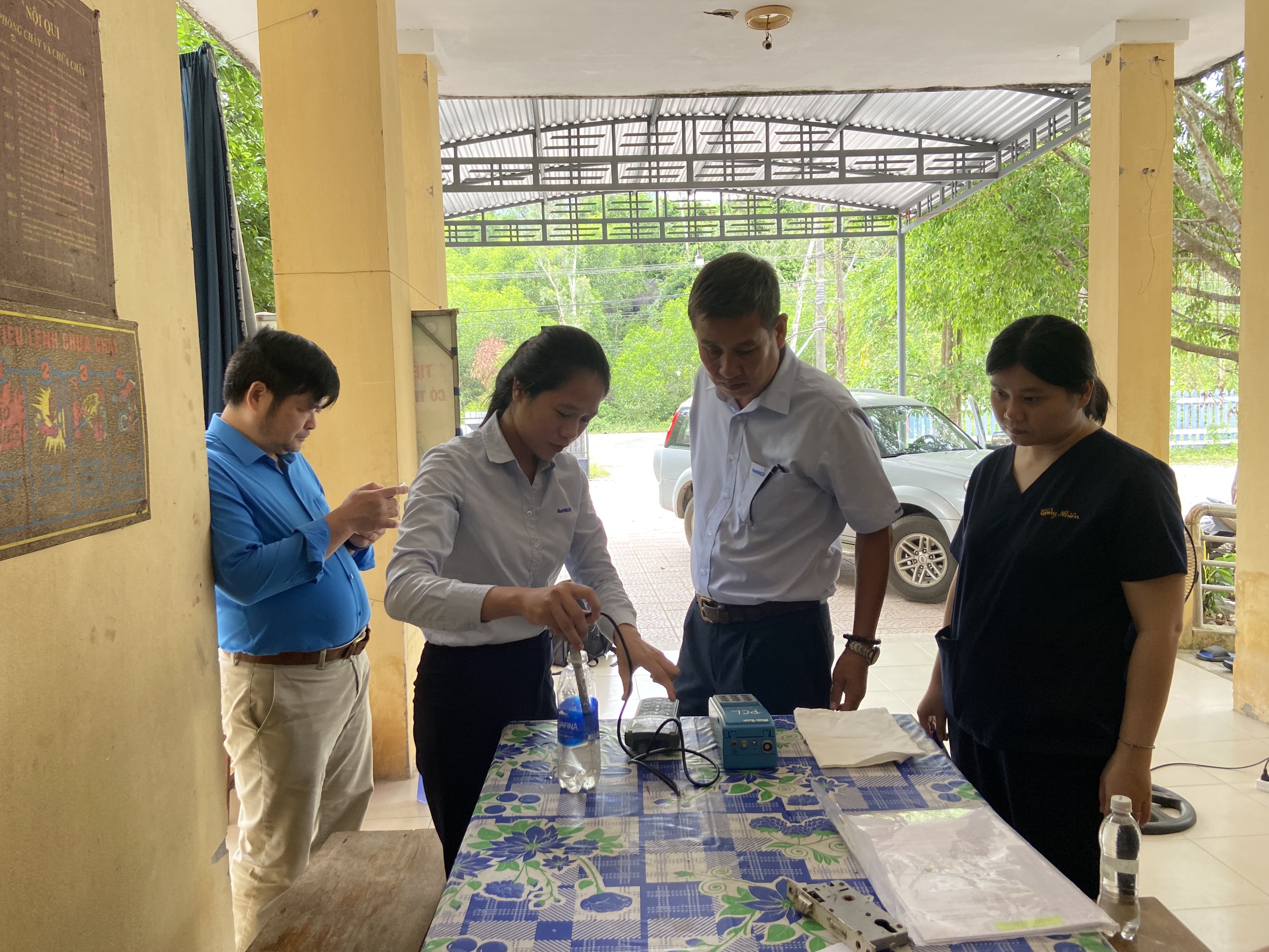 Cán bộ Khoa Xét nghiệm và cán bộ HueWACO lấy mẫu tại Trạm Y tế xã Lộc Bình