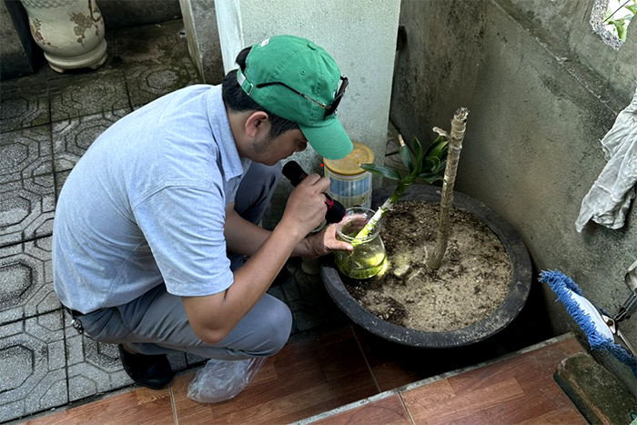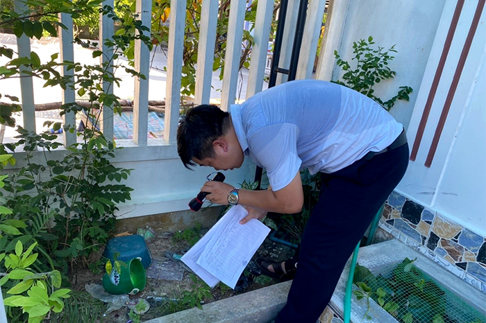 Cán bộ CDC tỉnh kiểm tra lăng quăng tại phường Thủy Châu (Hương Thủy)