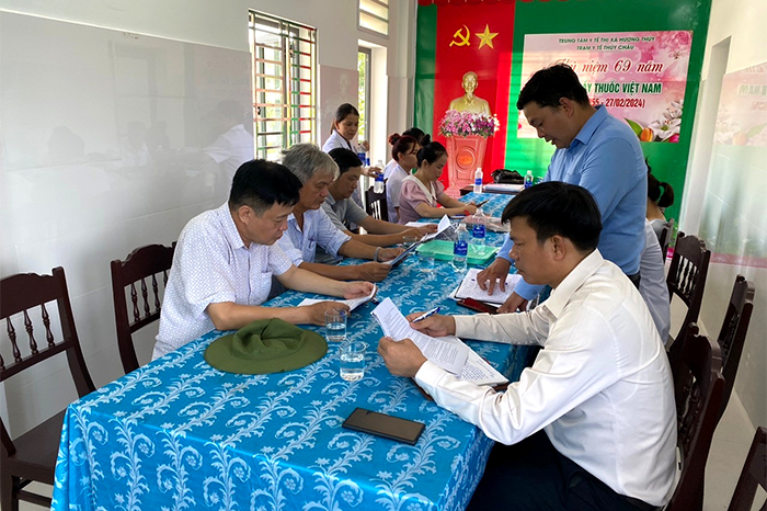 Cán bộ CDC tỉnh, TTYT Hương Thủy làm việc với Ban chỉ đạo, TYT phường Thủy Châu