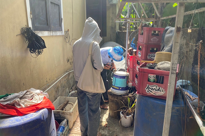 Cán bộ CDC tỉnh kiểm tra bọ gậy tại phường Vỹ Dạ (TP Huế)
