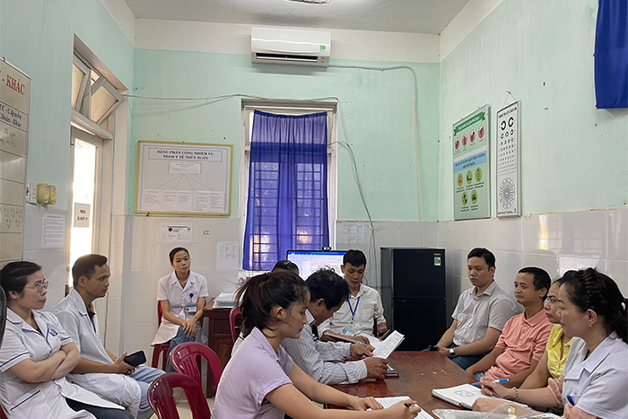 Cán bộ CDC tỉnh, TTYT TP Huế làm việc với Ban chỉ đạo, TYT phường Thủy Xuân