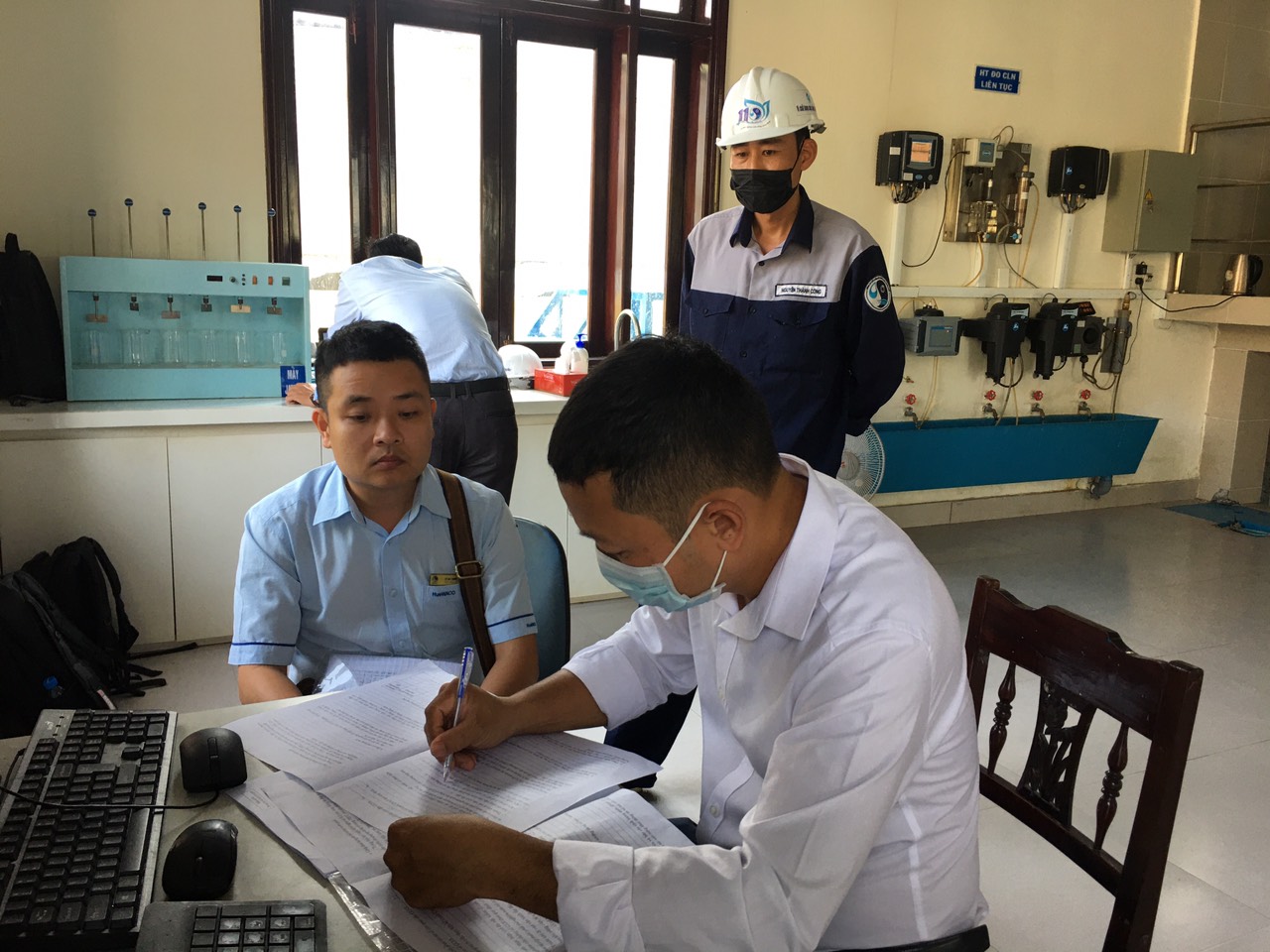 Kiểm tra hồ sơ nội kiểm tại nhà máy nước sạch Tứ Hạ, thị xã Hương Trà.