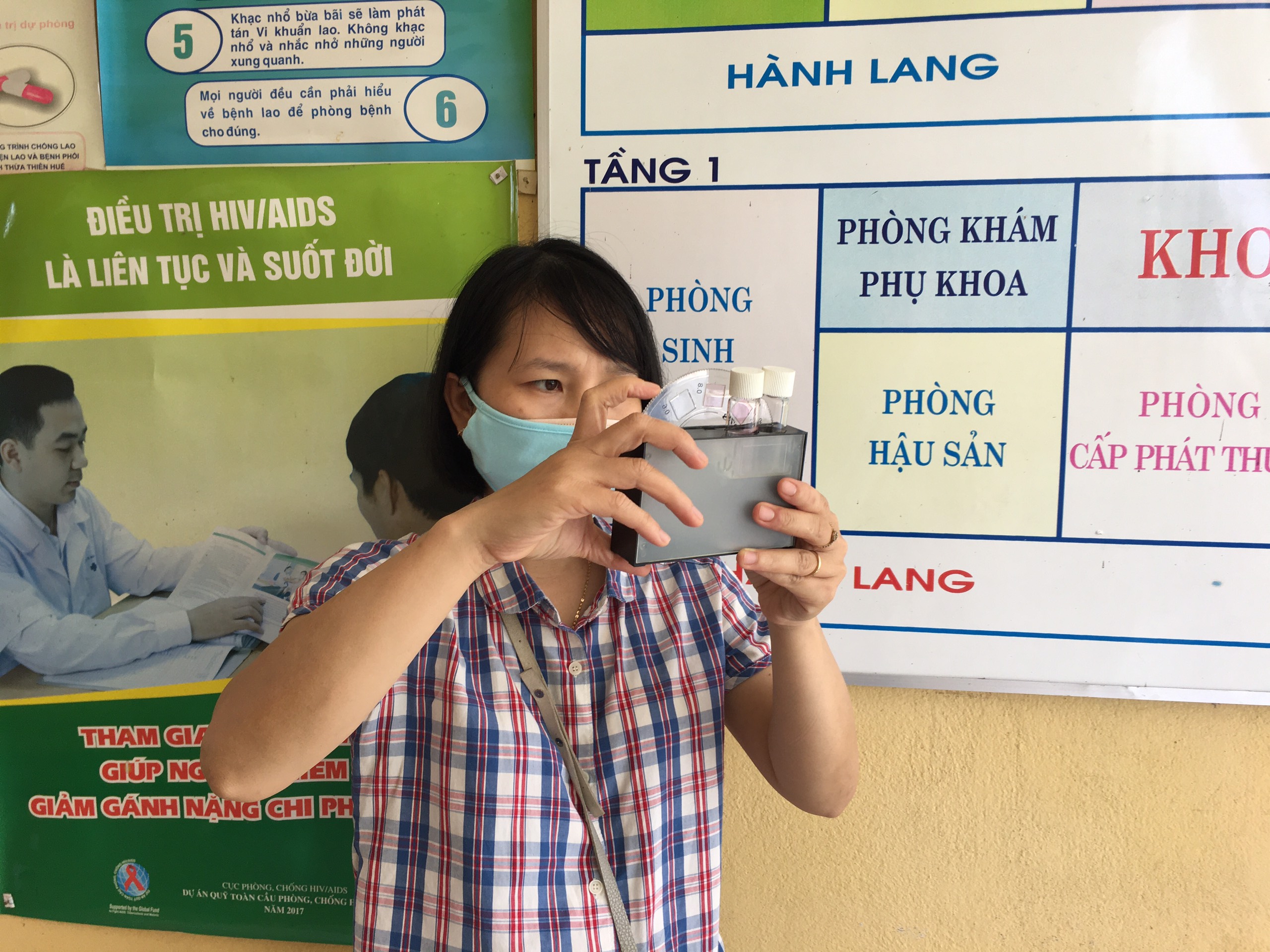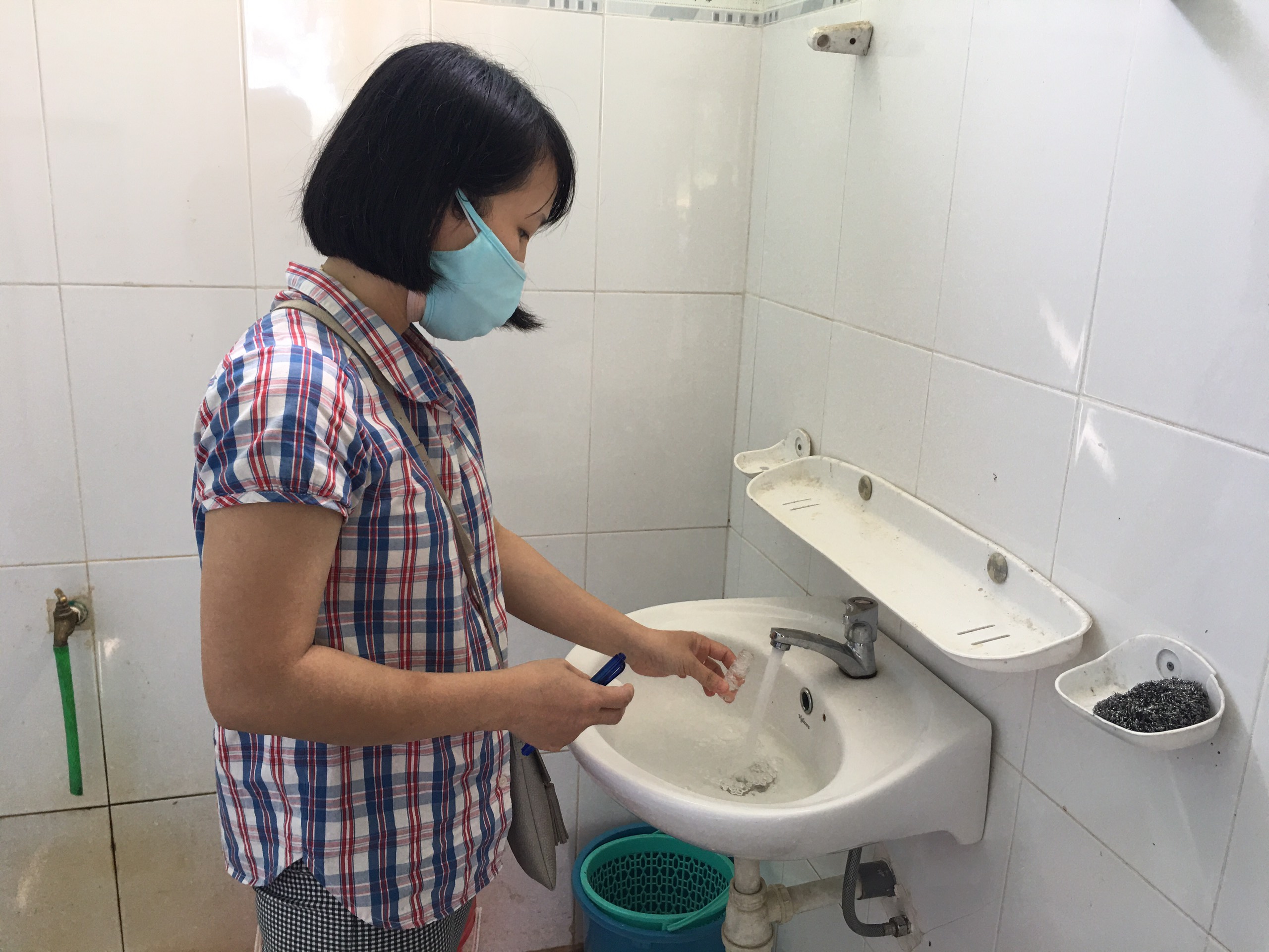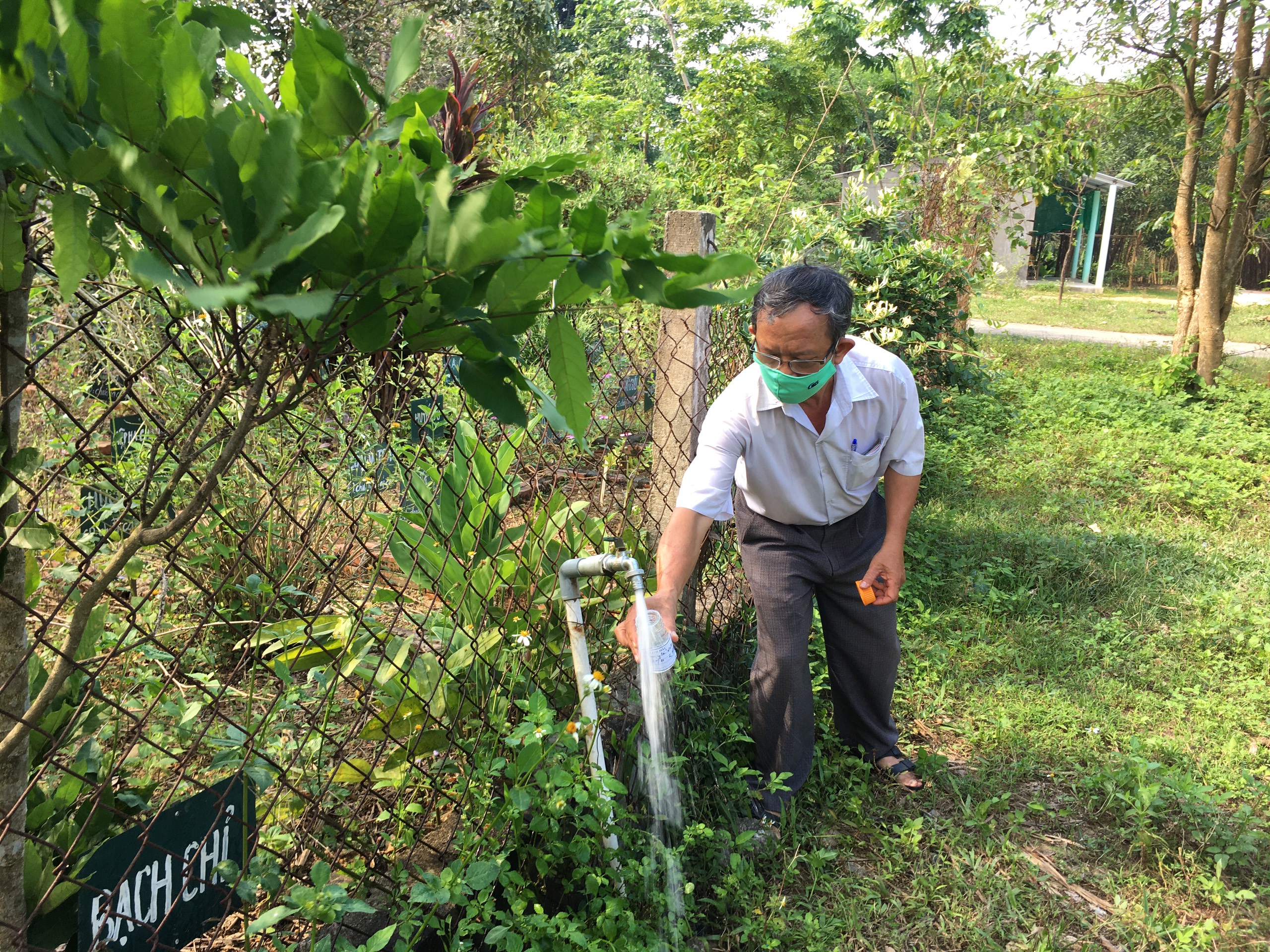 Cán bộ khoa xét nghiệm Trung tâm KSBT lấy mẫu nước tại Trạm y tế xã Thượng Lộ, huyện Nam Đông