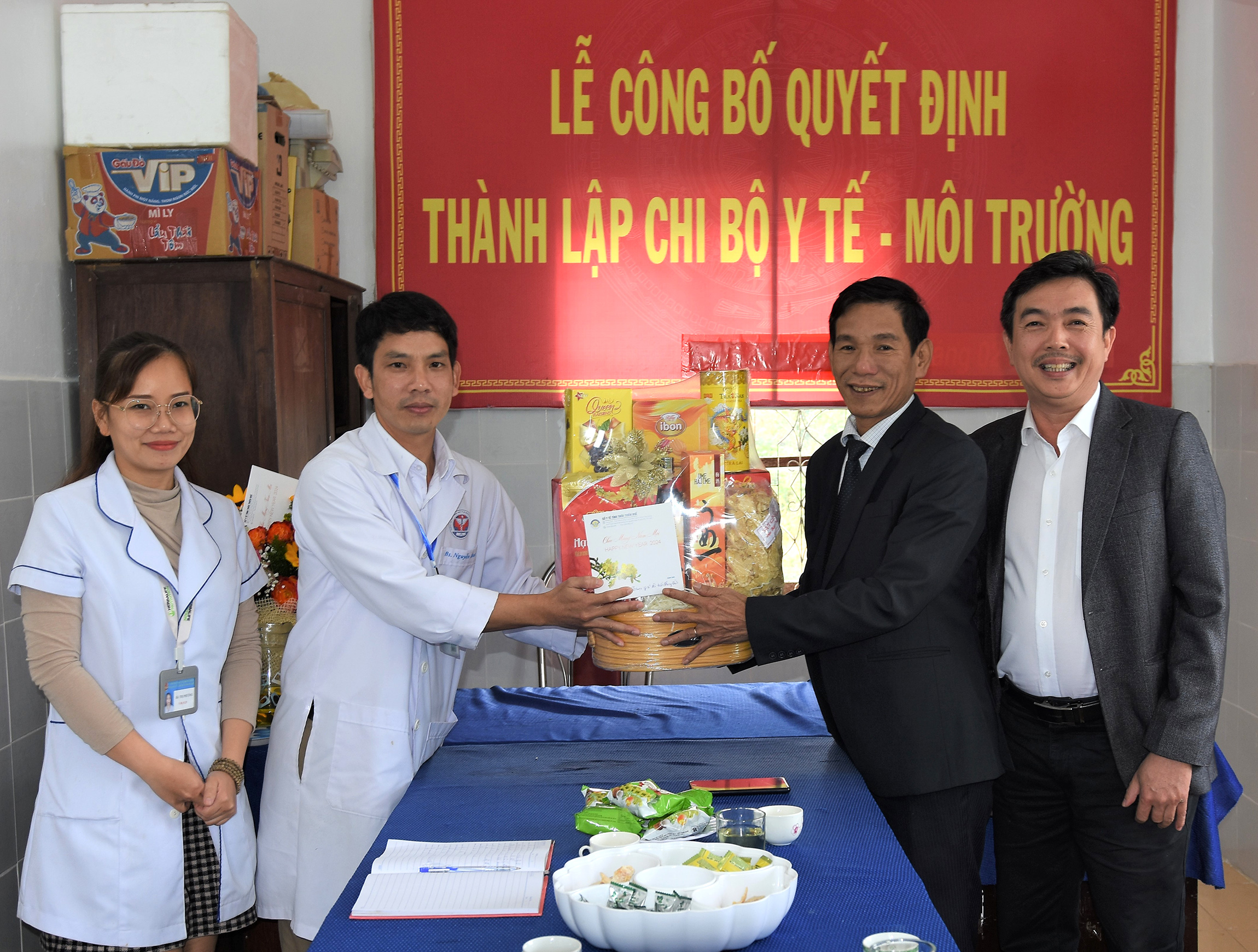 DSCKI Lê Viết Bắc - Phó Giám đốc Sở, Chủ tịch Công đoàn Ngành Y tế thăm hỏi, chúc mừng và tặng quà cho TYT Lộc Điền.