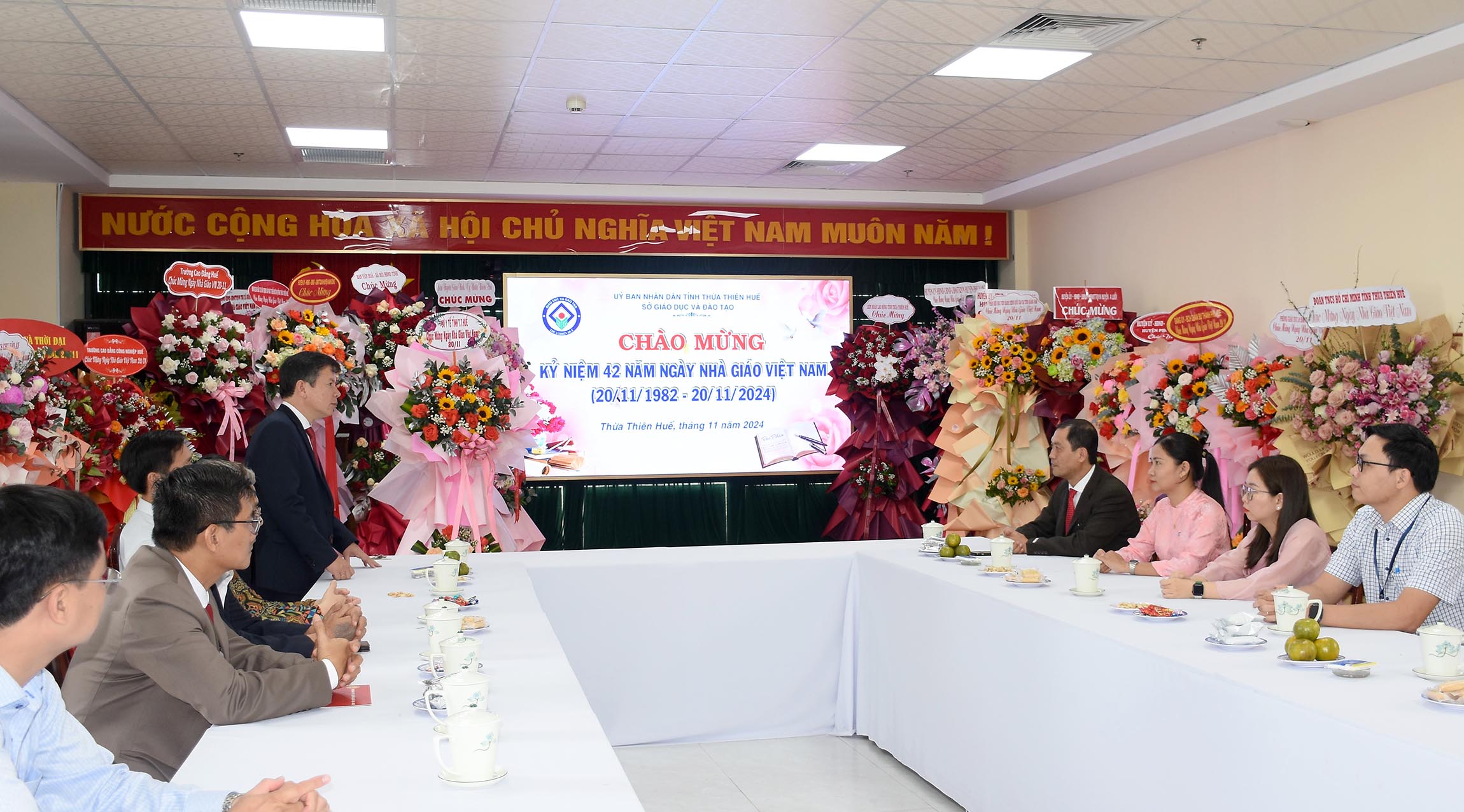 “Ngày Nhà giáo Việt Nam” được tổ chức hằng năm không chỉ dịp để Ngành Giáo dục tôn vinh những người hoạt động trong Ngành, để học trò thể hiện lòng thành kính “tôn sư trọng đạo”. Còn là dịp để xã hội tôn vinh, tri ân những người đã, đang đóng góp và gắn bó với nghề dạy học. Dịp này, Ban Giám đốc Sở Y tế đã gửi tặng những lẵng hoa tươi thắm, lời thăm hỏi chân thành và chúc mừng nhân ngày Nhà Giáo Việt Nam đến lãnh đạo cùng toàn thể cán bộ, công viên chức và quý thầy cô của Sở Giáo dục - Đào tạo, Phân hiệu Học viện Hành chính Quốc gia chi nhánh Huế, Trường Chính trị Nguyễn Chí Thanh, Trường Đại học Y Dược - Đại học Huế, Trường Cao đẳng Y tế Huế…