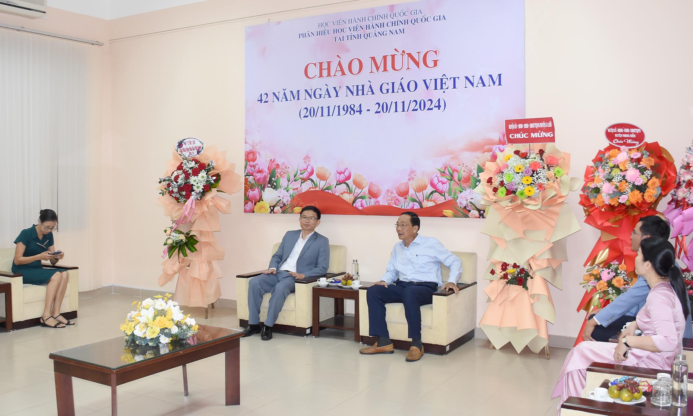 ThS. BSCKII Hoàng Trọng Quý tặng hoa chúc mừng Học viện Hành chính Quốc gia chi nhánh Huế.