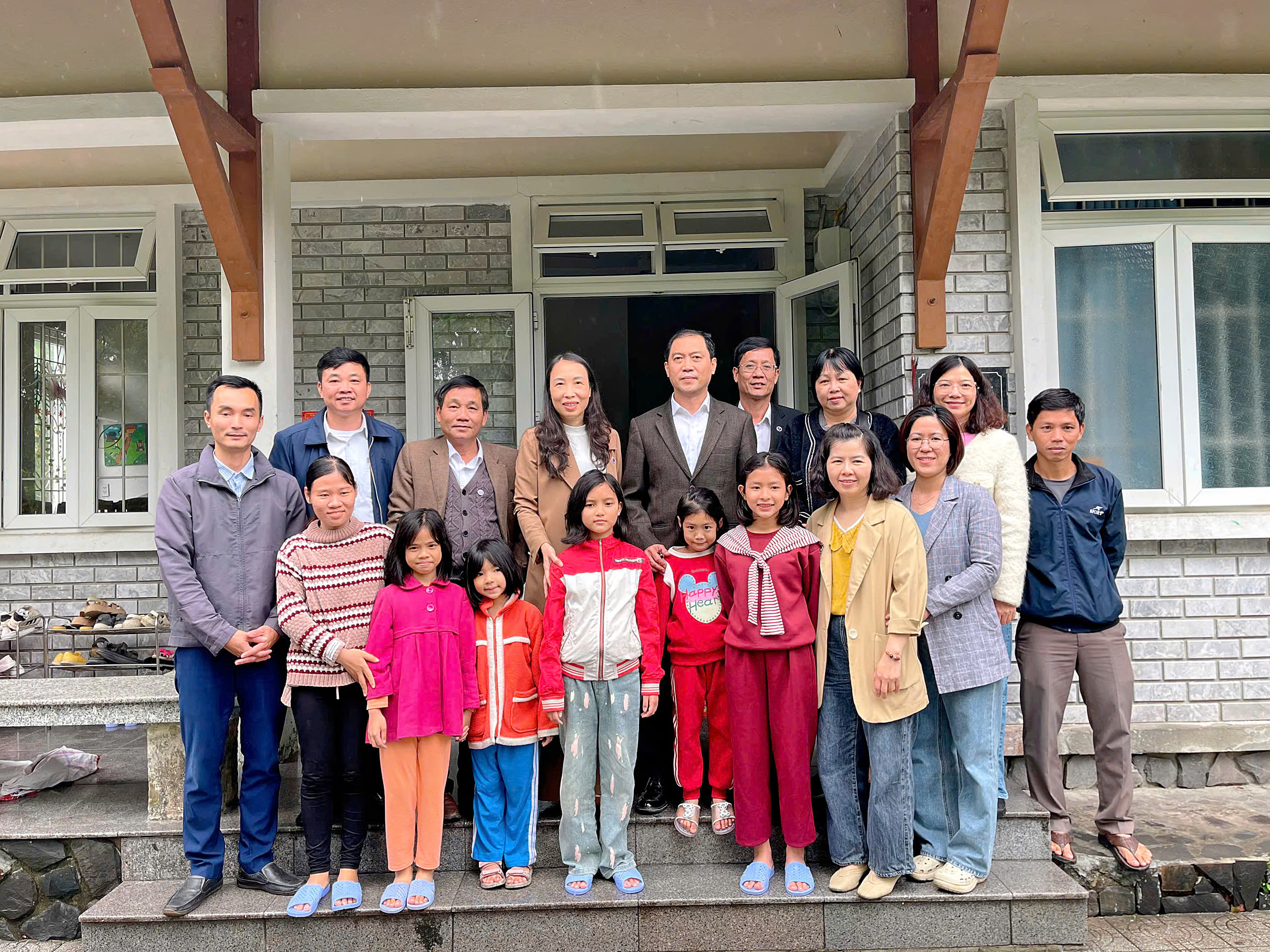 Đoàn đã tiến hành kiểm tra thực trạng, cơ sở vật chất, trang thiết bị, nhân lực và nghe lãnh đạo Cơ sở báo cáo về tình hình chăm sóc, nuôi dưỡng, giáo dục trẻ, công tác tài chính. Hiện nay, Làng có 12 cán bộ nhân viên thực hiện tiếp nhận, quản lý, chăm sóc và nuôi dưỡng 58 trẻ em thuộc đối tượng trẻ mồ côi, không nơi nương tựa, gia đình có hoàn cảnh đặc biệt khó khăn trong đó: 8 trẻ đại học, trung cấp nghề tại Đà Nẵng và thành phố HCM; 50 trẻ em đang sống tại Làng. Ngoài việc học tập tai trường, trẻ được tham gia học bổ trợ kiến thức tùy theo năng lực và nhu cầu học do các giáo viên đến dạy tại Làng: lớp Toán , lớp Anh văn và tin học (được tài trợ bởi Hội Giúp đỡ trẻ em Việt Nam tại Pháp-AEVN). Từ khi thành lập Làng (2000) đến nay, nhiều cháu đã lớn lên và trưởng thành từ cái nôi này. Sau khi tốt nghiệp các trường nghề, cao đẳng, đại học các cháu đã tìm được việc làm theo chuyên môn được đào tạo, ổn định cuộc sống và lập gia đình.