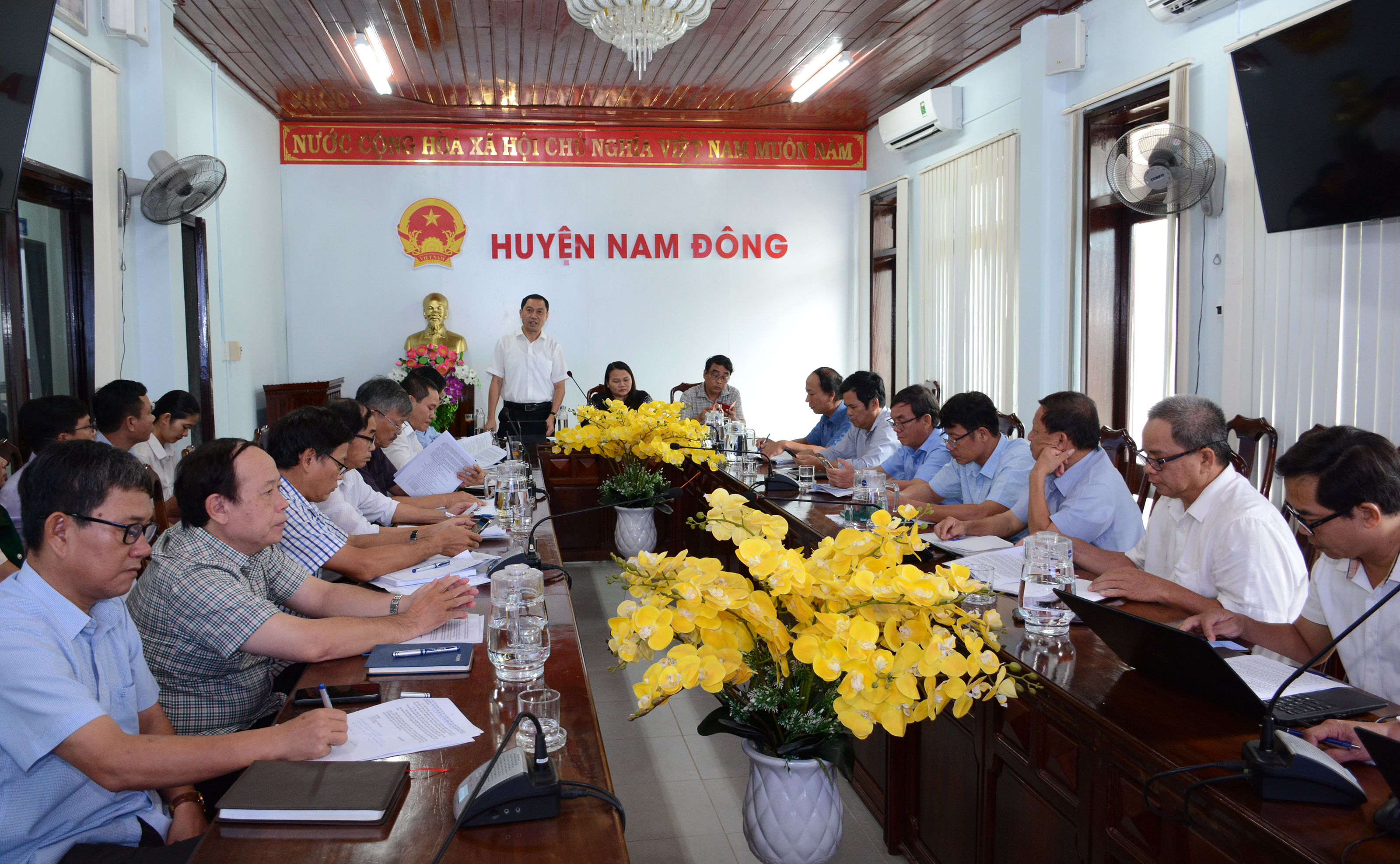 Ngày 04/8/2023, tại huyện Nam Đông, Ban Giám đốc sở Y tế do PGS.TS.BS Trần Kiêm Hảo - Giám đốc làm trưởng đoàn, cùng Chánh Văn phòng, Chánh Thanh tra, lãnh đạo các phòng chuyên môn và nghiệp vụ của sở Y tế có buổi làm việc về phát triển ngành Y tế huyện Nam Đông. Đồng chí Trần Thị Hoài Trâm - Bí thư huyện ủy, đồng chí Trần Quốc Phụng - Chủ tịch UBND, cùng Chánh Văn phòng, lãnh đạo Phòng Tài chính - Kế hoạch, Phòng Nông nghiệp và Phát triển Nông thôn cùng các Ban/Ngành liên quan, Ban Giám đốc và các bộ phận chuyên môn TTYT huyện Nam Đông tiếp và làm việc với Đoàn công tác sở Y tế.