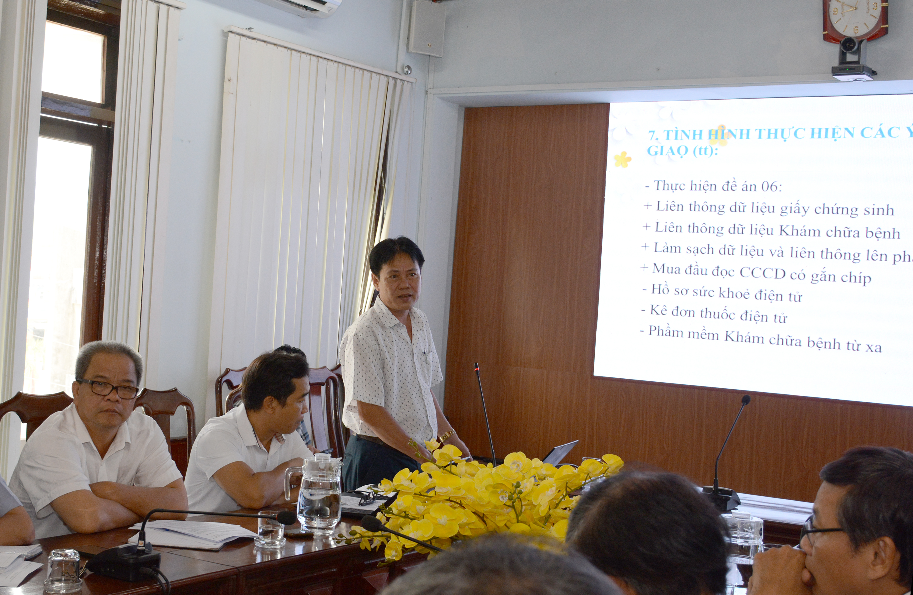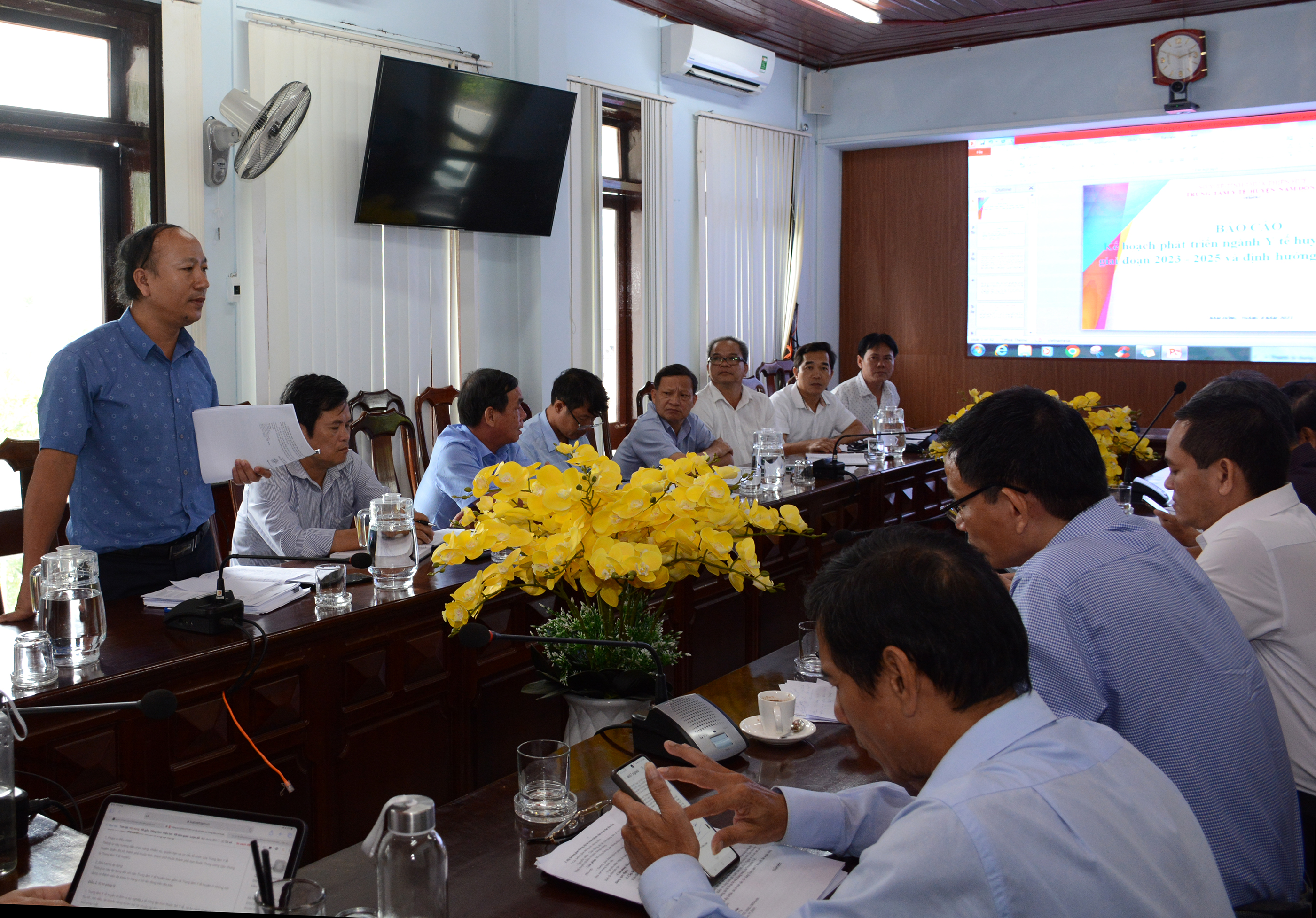 BSCKI Võ Phi Long - Giám đốc TTYT huyện Nam Đông báo cáo “Kế hoạch xây dựng và phát triển ngành Y tế huyện Nam Đông giai đoạn 2023-2025 và định hướng đến năm 2030”.