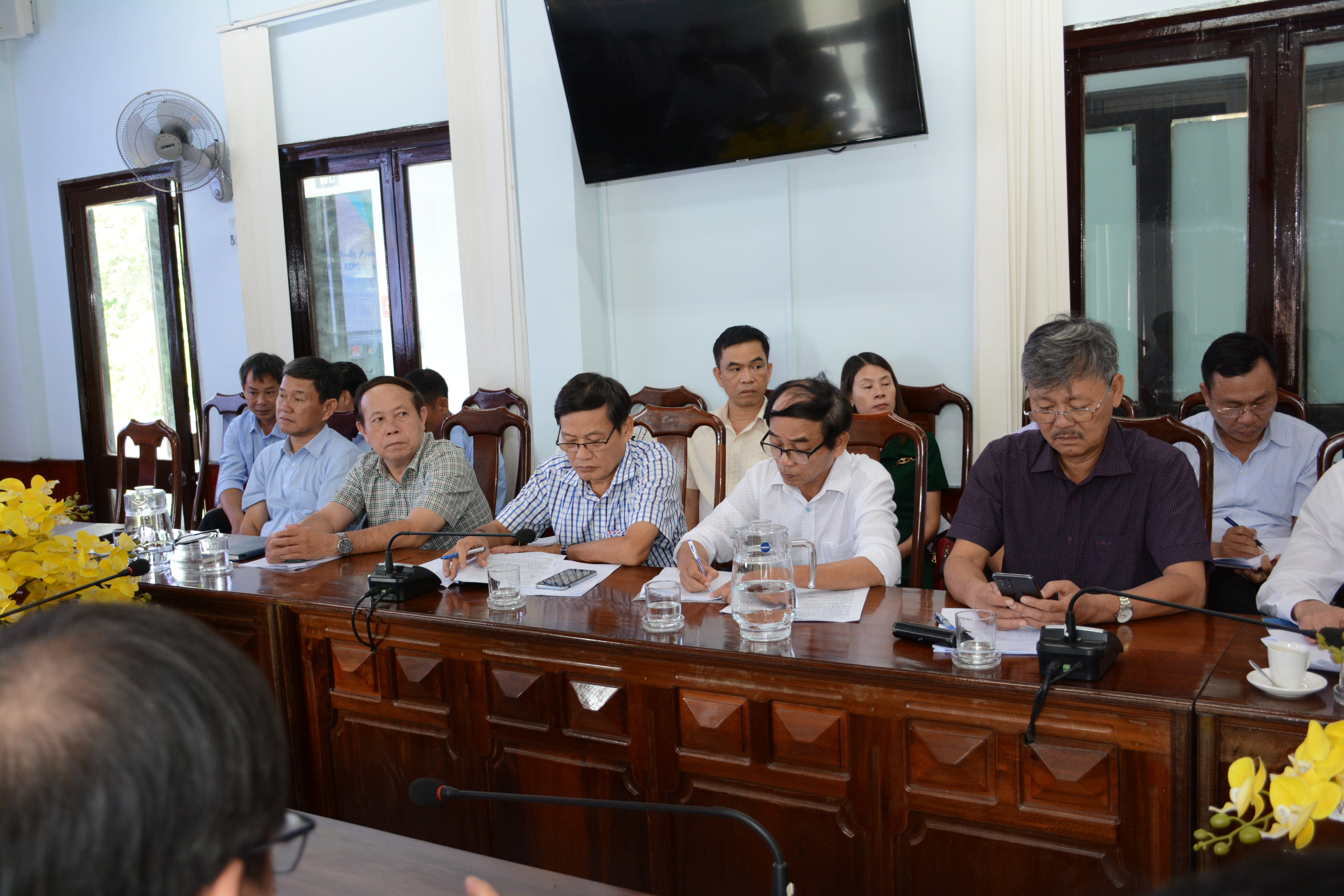 Các Phó Giám đốc sở Y tế và thành viên dự họp tham mưu về giải pháp thực hiện, khắc phục tồn tại và góp ý xây dựng các mục tiêu, chỉ tiêu phát triển ngành Y tế huyện Nam Đông.