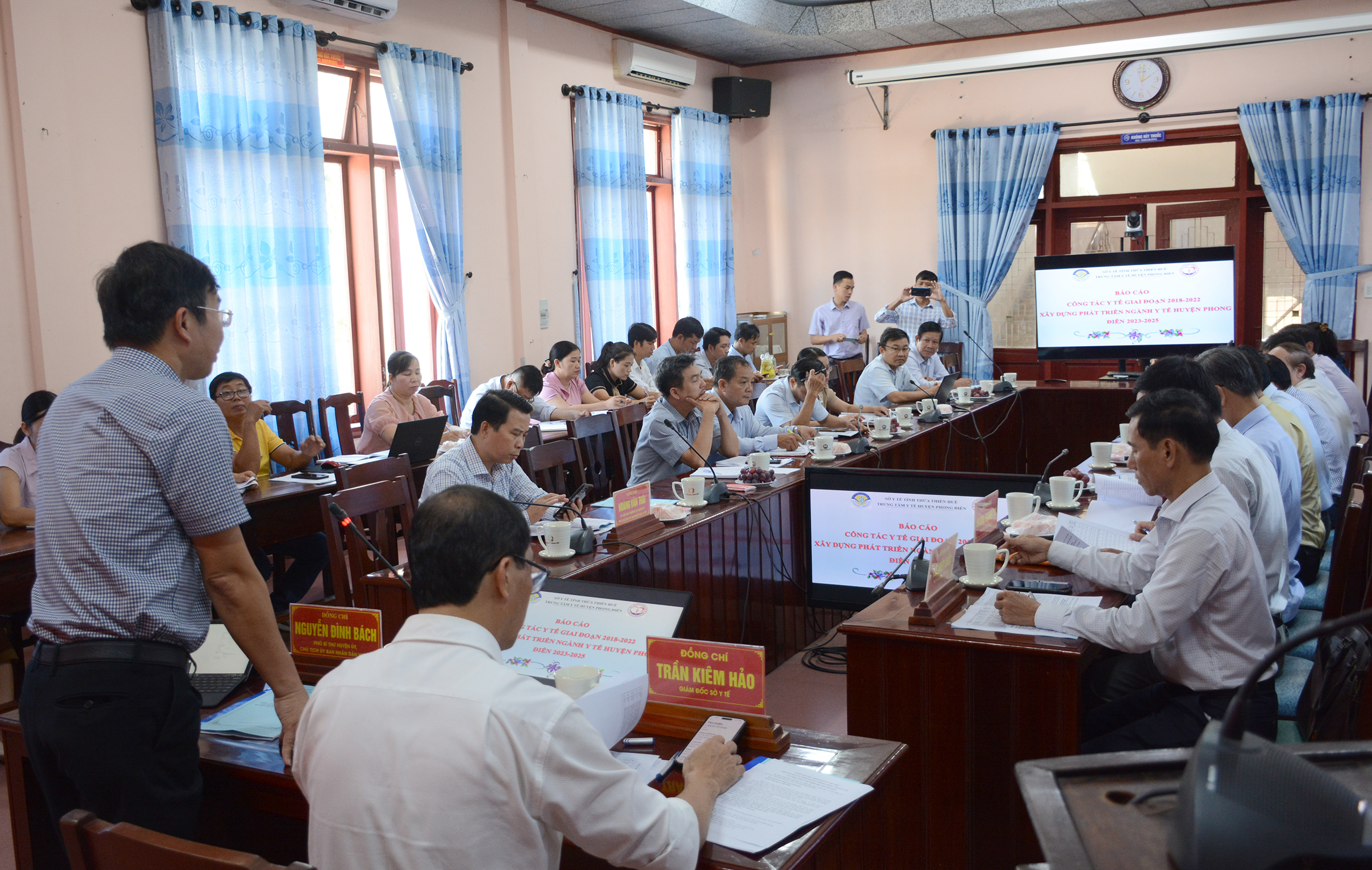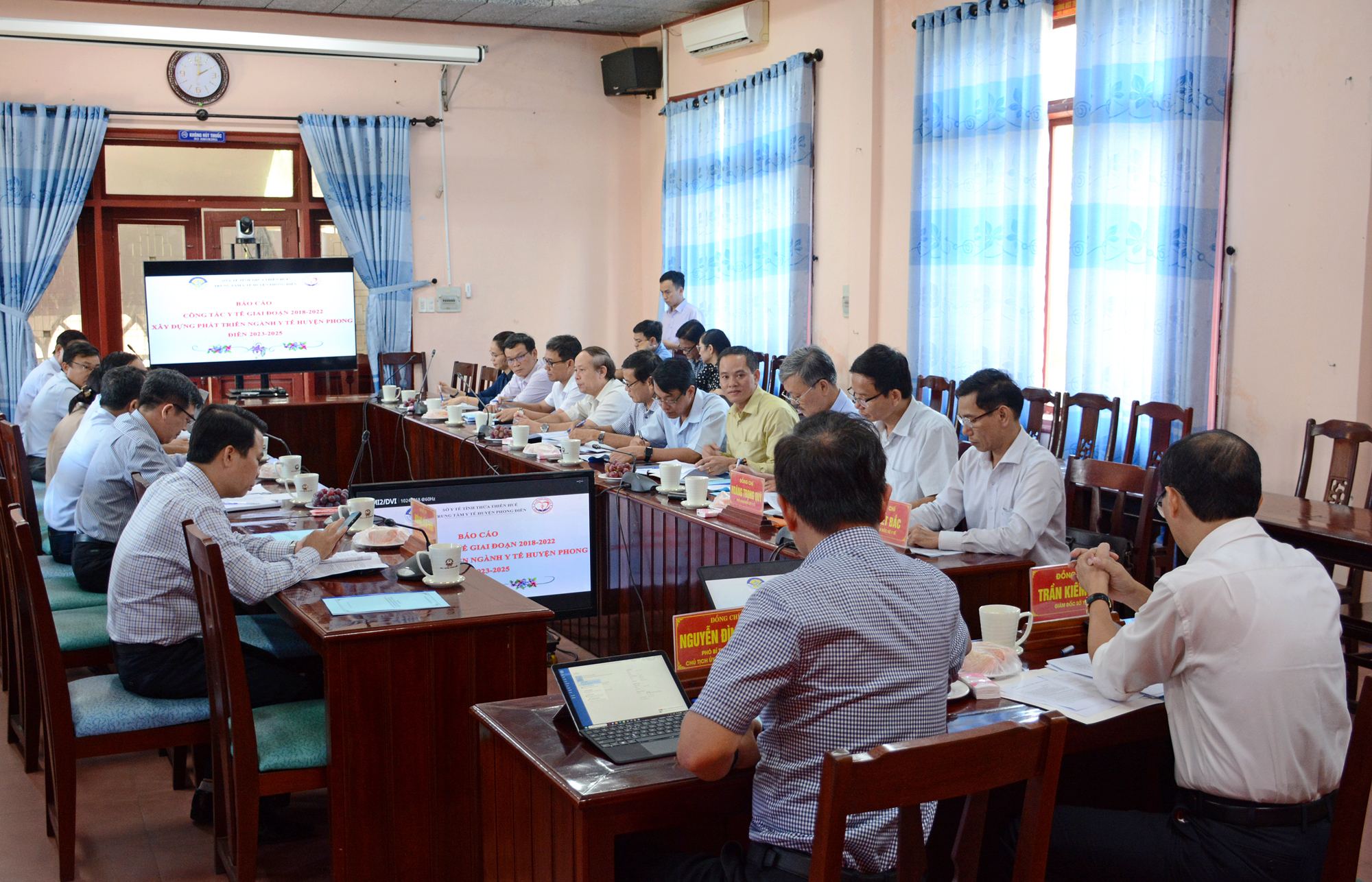 Qua báo cáo “Công tác y tế giai đoạn 2018-2022 và xây dựng phát triển ngành Y tế huyện Phong Điền giai đoạn 2023-2025” và các ý kiến tham mưu, kiến nghị, đề xuất về giải pháp thực hiện các mục tiêu và giải pháp khắc phục tồn tại từ các bộ phận tham mưu của Sở Y tế và các đơn vị liên quan huyện Phong Điền, lãnh đạo ngành Y tế và UBND huyện xác định công tác bảo vệ, chăm sóc và nâng cao sức khỏe nhân dân là nhiệm vụ quan trọng trong phát triển kinh tế - văn hóa - xã hội của địa phương, vì vậy cần phải có giải pháp cụ thể và sự đầu tư hiệu quả.