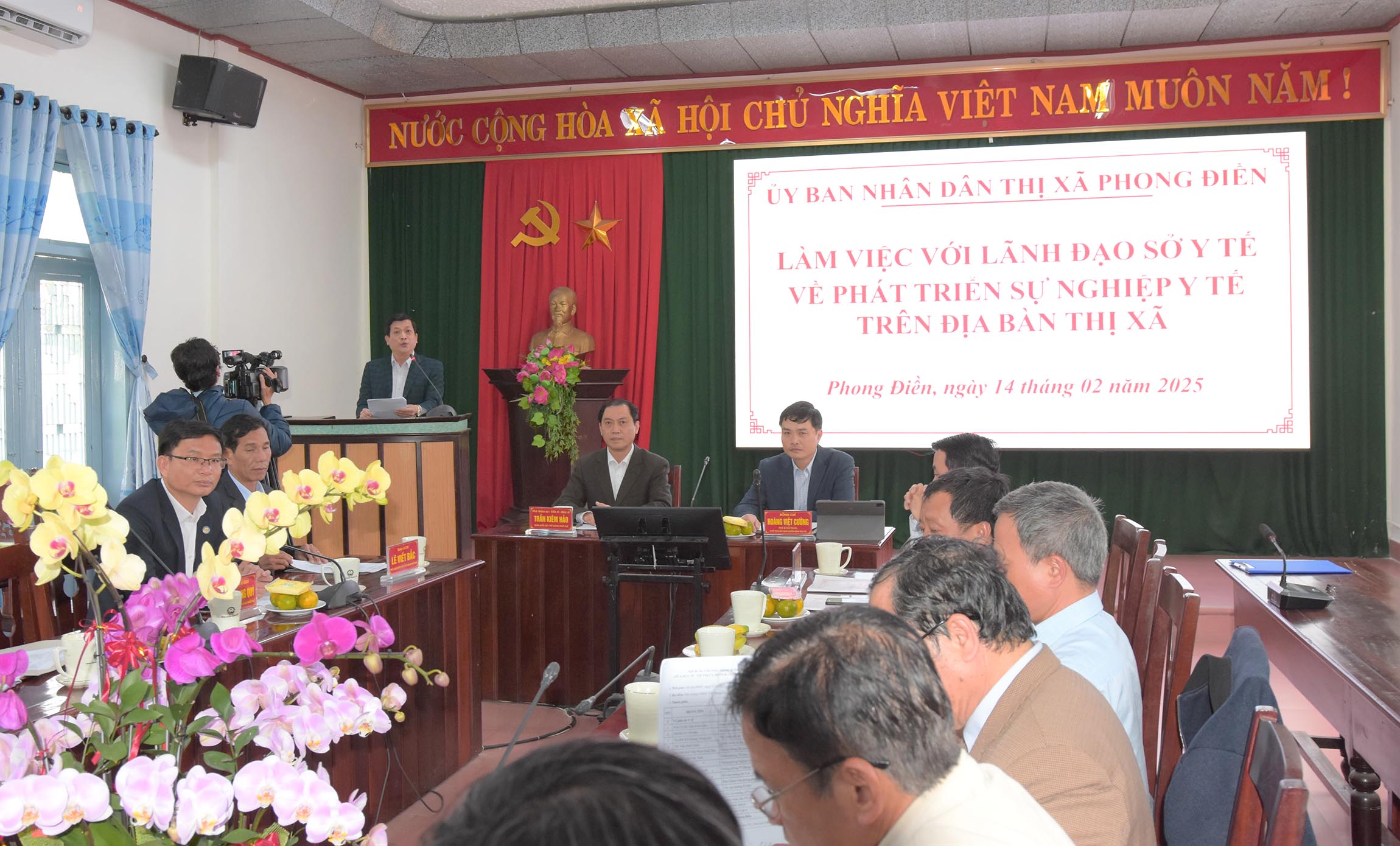 Ngày 14/2/2025, lãnh đạo UBND thị xã Phong Điền đã có buổi làm việc với Sở Y tế thành phố về phát triển, nâng cao năng lực y tế tại địa phương năm 2025 và thời gian tới. Đoàn công tác Sở Y tế do PGS.TS.BS Trần Kiêm Hảo - Giám đốc làm trưởng đoàn, cùng các Phó Giám đốc, lãnh đạo các phòng chuyên môn/nghiệp vụ Sở Y tế và các đơn vị trực thuộc. Đồng chí Hoàng Việt Cường - Phó Bí thư Thị ủy - Chủ tịch, đồng chí Hoàng Văn Thái Phó - Chủ tịch UBND thị xã Phong Điền, lãnh đạo TTYT thị xã cùng các đơn vị/bộ phận liên quan tiếp và làm việc với Đoàn.