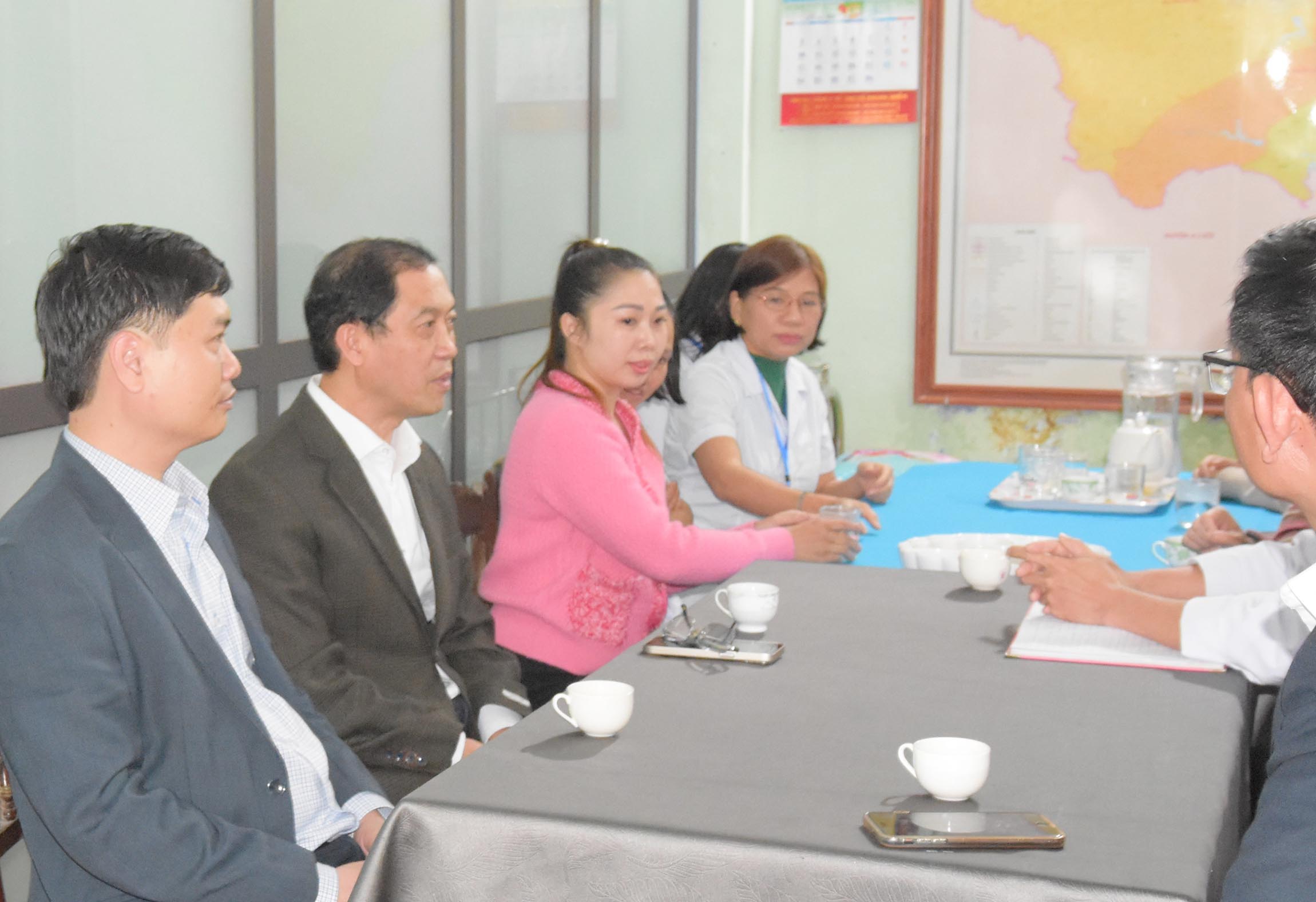 Đoàn công tác thăm hỏi và nắm tình hình hoạt động tại trạm Y tế thị trấn Phong Thu.