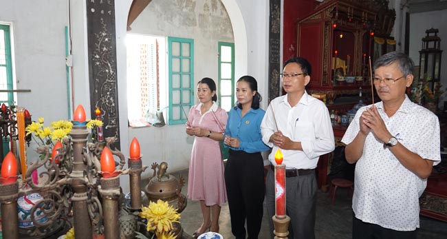 DS.CKI Lê Viết Bắc - Phó Giám đốc sở Y tế cùng các thành viên trong đoàn thay mặt lãnh đạo sở và cán bộ nhân viên Y tế thắp hương tri ân các Liệt sĩ và thăm hỏi, tặng quà cho các thương binh.