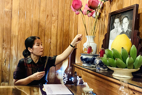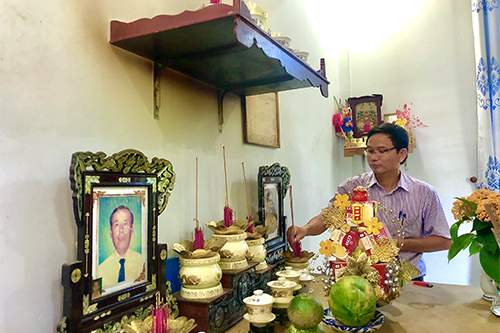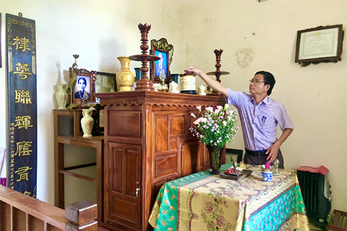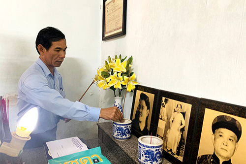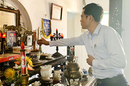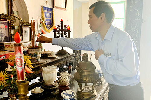 PGS.TS Trần Kiêm Hảo - Giám đốc Sở Y tế thăm và dâng hương tại gia đình Liệt sĩ Nguyễn Mậu Dương