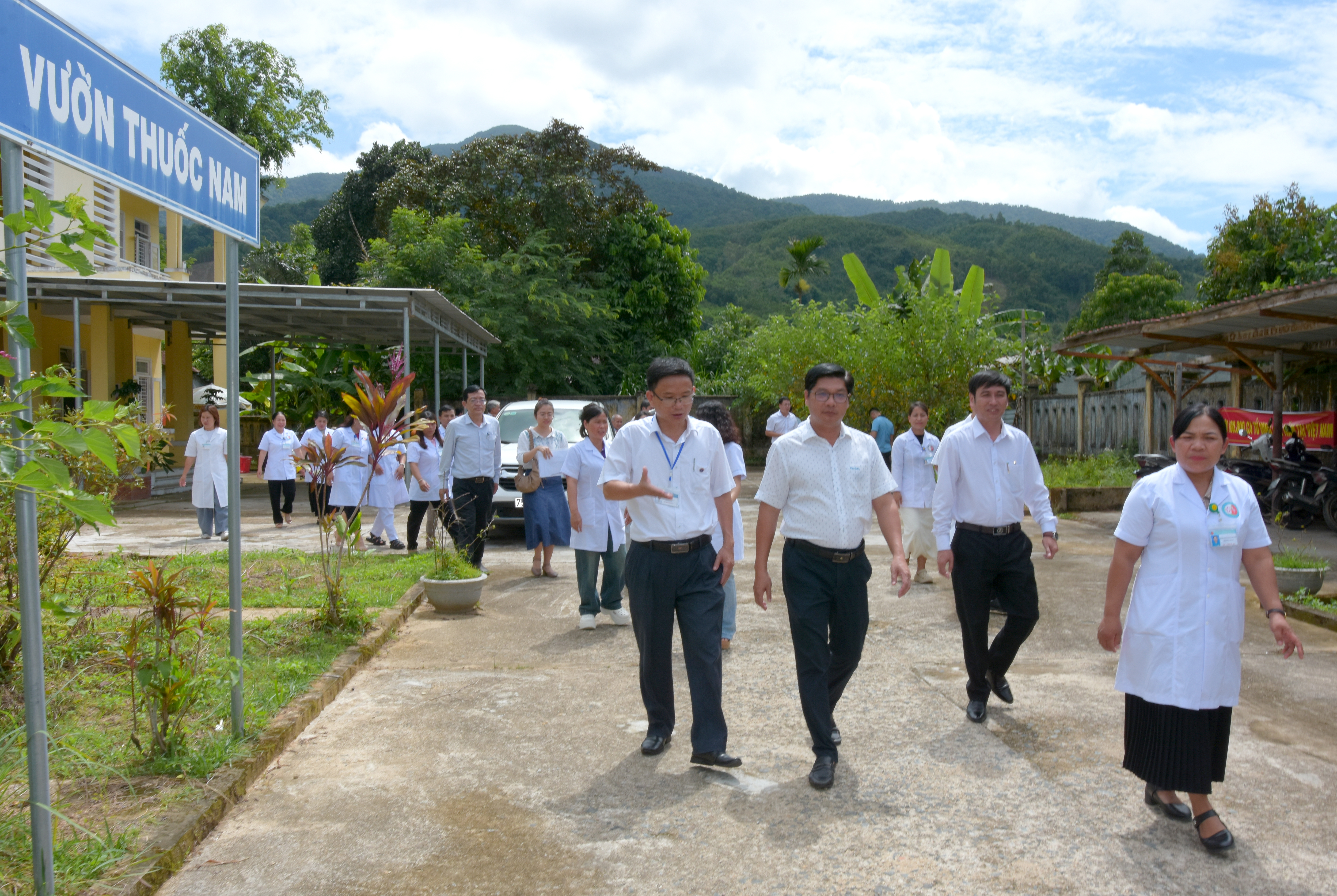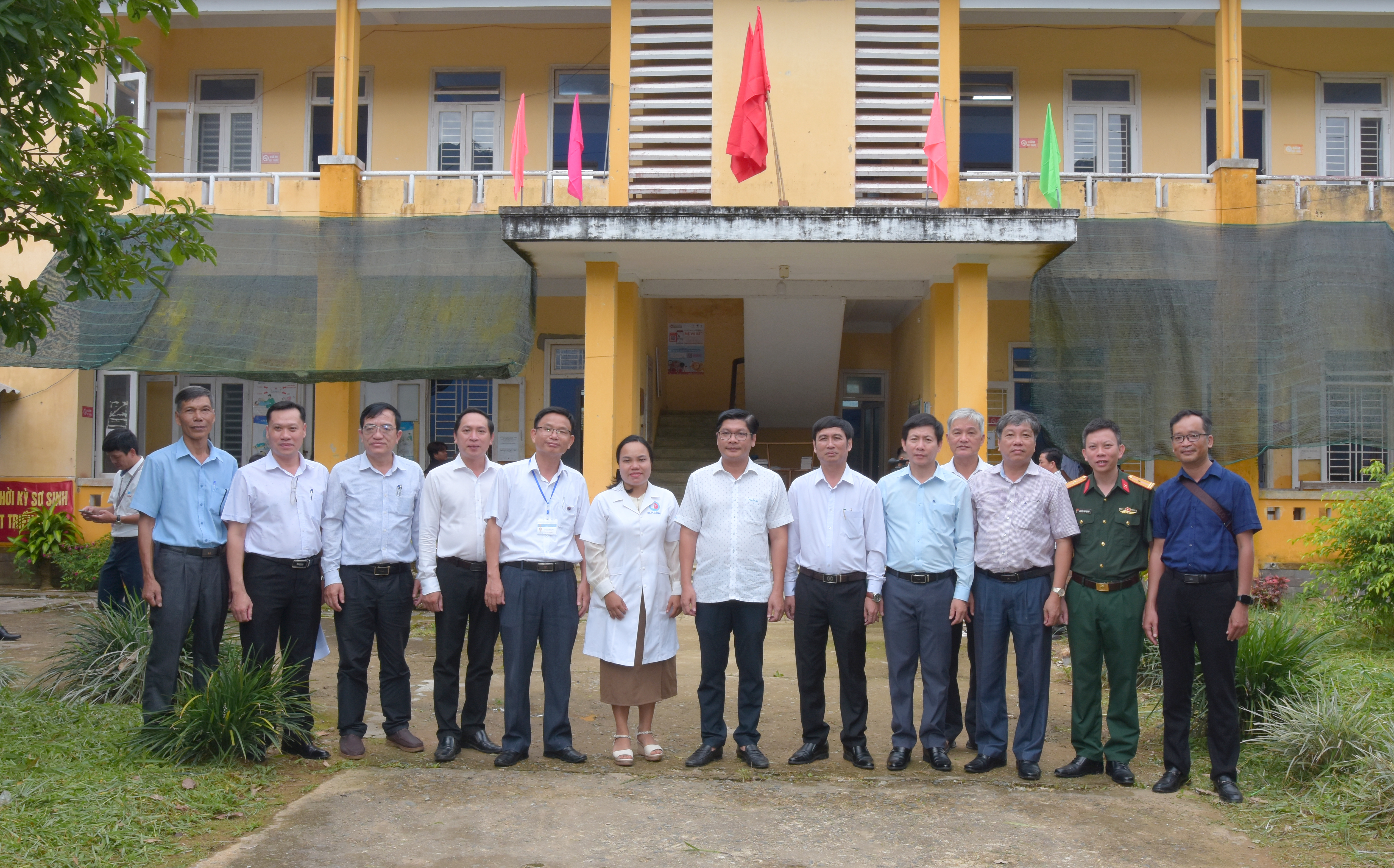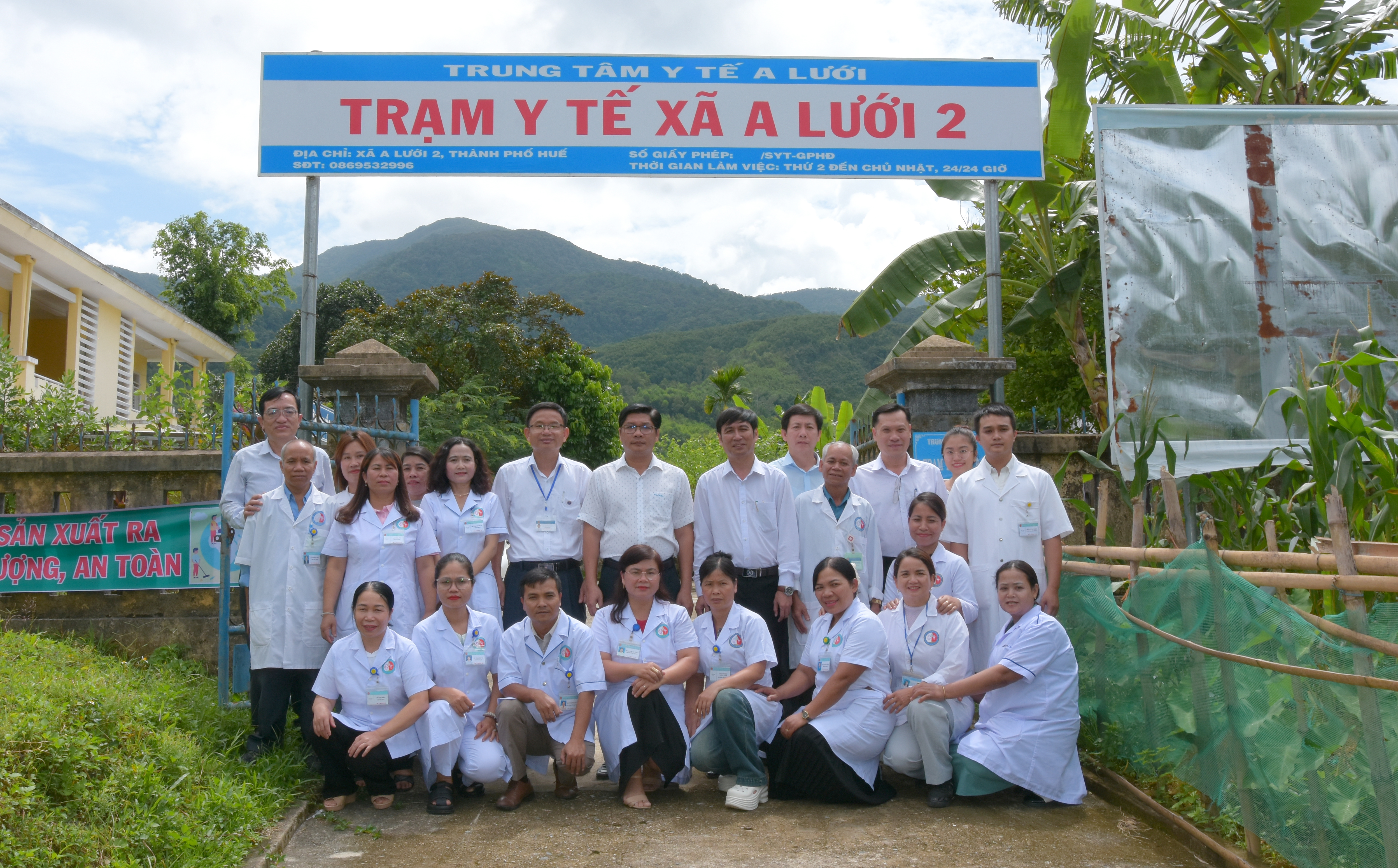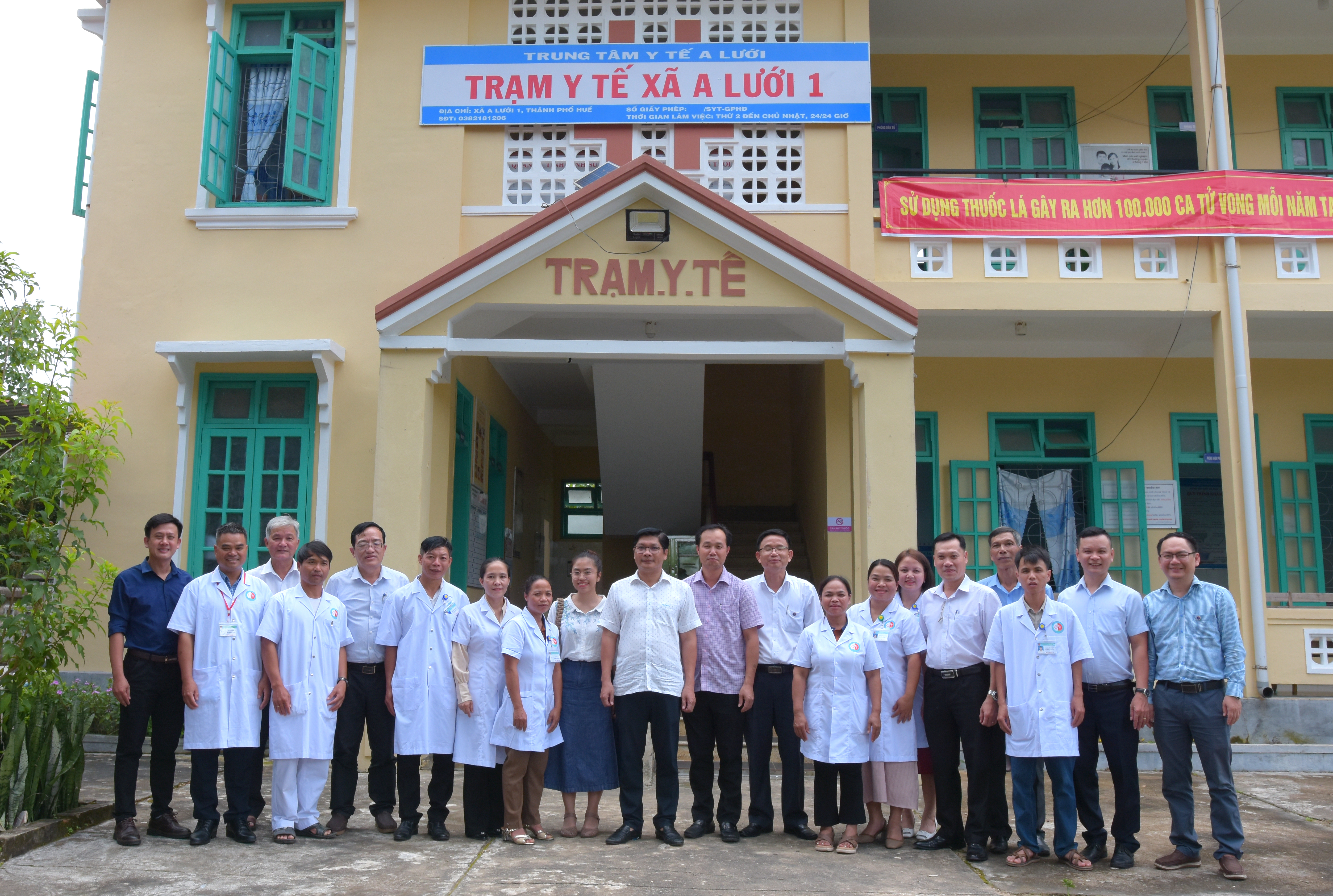Đoàn thăm và làm việc tại trạm Y tế xã A Lưới 5 có trụ sở trạm Y tế chính nẳm ở Hồng Hạ cũ.