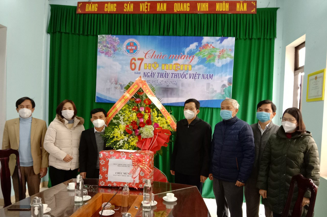 Ngày 24/2/2022, Thị ủy- HĐND-UBND-UBMTTQ Việt Nam thị xã Hương Trà do đồng chí Hà Văn Tuấn-TUV, Bí thư Thị ủy- Chủ tịch HĐND thị xã Hương Trà làm trưởng đoàn, tham gia đoàn có đồng chí Lê Hồng Thắng, Phó Bí thư thường trực Thị ủy; đồng chí Nguyễn Thị Thu Hương, Chủ tịch UBMTTQ Việt Nam thị xã Hương Trà; đồng chí Đỗ Ngọc An-Phó Chủ tịch UBND thị xã Hương Trà cùng với lãnh đạo các Ban Đảng, văn phòng Thị ủy và UBND thị xã Hương Trà đã đến thăm và tặng hoa chúc mừng cán bộ y bác sỹ nhân dịp kỷ niệm 67 năm Ngày thầy thuốc Việt Nam (27/2/1955 - 27/2/2022).