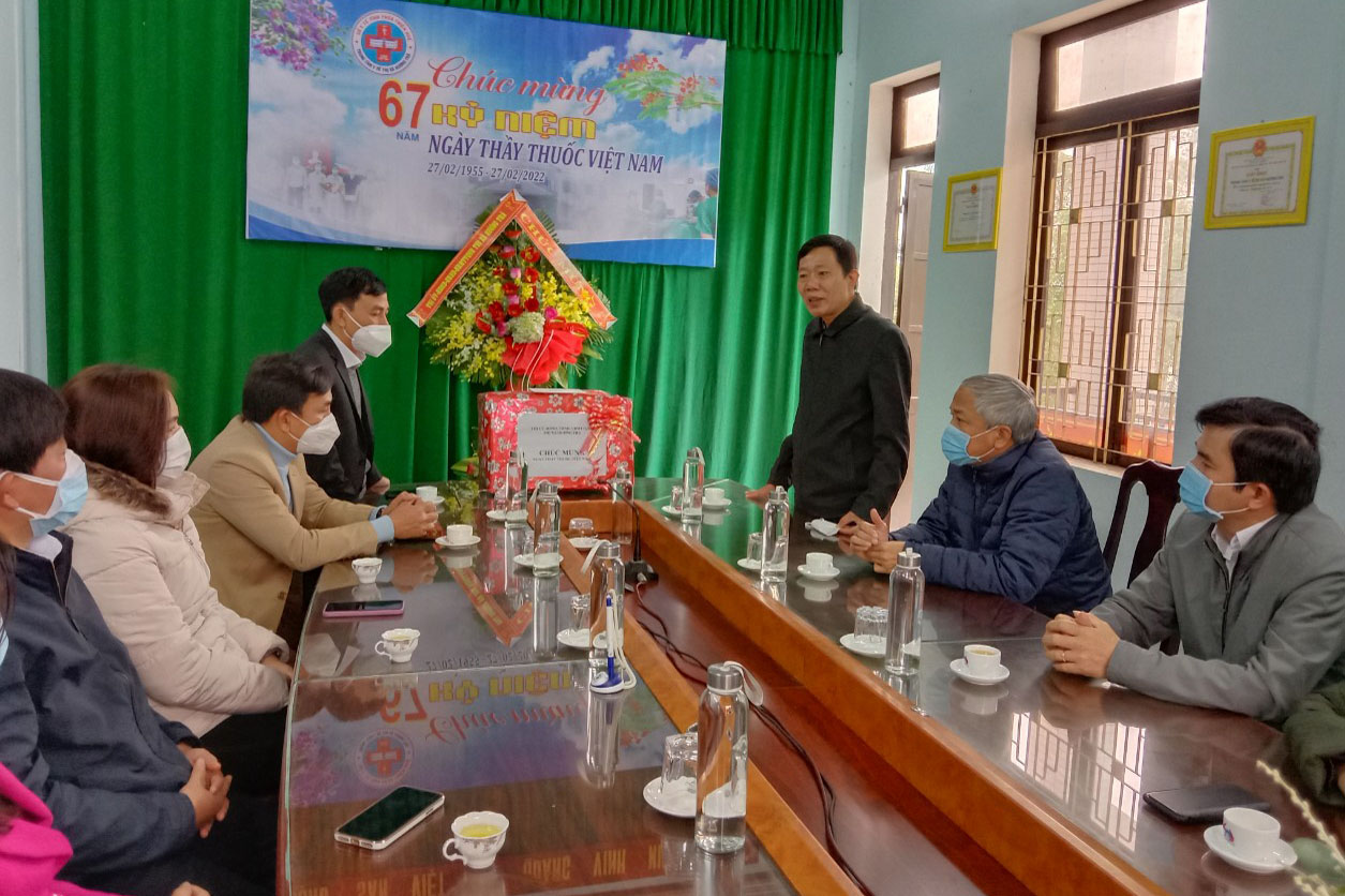 Phát biểu tại buổi đến thăm, đồng chí Hà Văn Tuấn đã ghi nhận và đánh giá cao những nỗ lực của tập thể cán bộ, nhân viên, y bác sĩ trong công tác khám chữa bệnh và chăm sóc bảo vệ sức khỏe cho nhân dân cũng như trong công tác phòng chống dịch bệnh trong thời gian qua. Đồng chí nhấn mạnh, trong thời gian đến dịch bệnh Covid-19 đang diễn biến phức tạp nên Ban Giám đốc và tập thể cán bộ y tế thị xã tiếp tục thực hiện công tác phòng chống dịch, tổ chức công tác xét nghiệm, thu dung và điều trị F0 kịp thời, đồng thời hướng dẫn cho Tổ y tế cộng đồng, Trạm Y tế chăm sóc và điều trị cho F0 tại nhà theo đúng phác đồ điều trị của Bộ Y tế. Nhân dịp 27/2, đồng chí gửi lời chúc sức khỏe và lời chúc mừng tốt đẹp nhất đến toàn thể cán bộ y bác sỹ Trung tâm Y tế cùng gia đình. Trong không khí thân mật, đầm ấm đồng chí cũng mong muốn mỗi cán bộ, nhân viên của bệnh viện sẽ là tấm gương sáng trong rèn luyện y đức, đoàn kết một lòng nhằm nâng cao trình độ chuyên môn cũng như trong phòng chống dịch bệnh xứng đáng là địa chỉ tin cậy, niềm tin trong công tác chăm sóc và bảo vệ sức khỏe cho nhân dân.