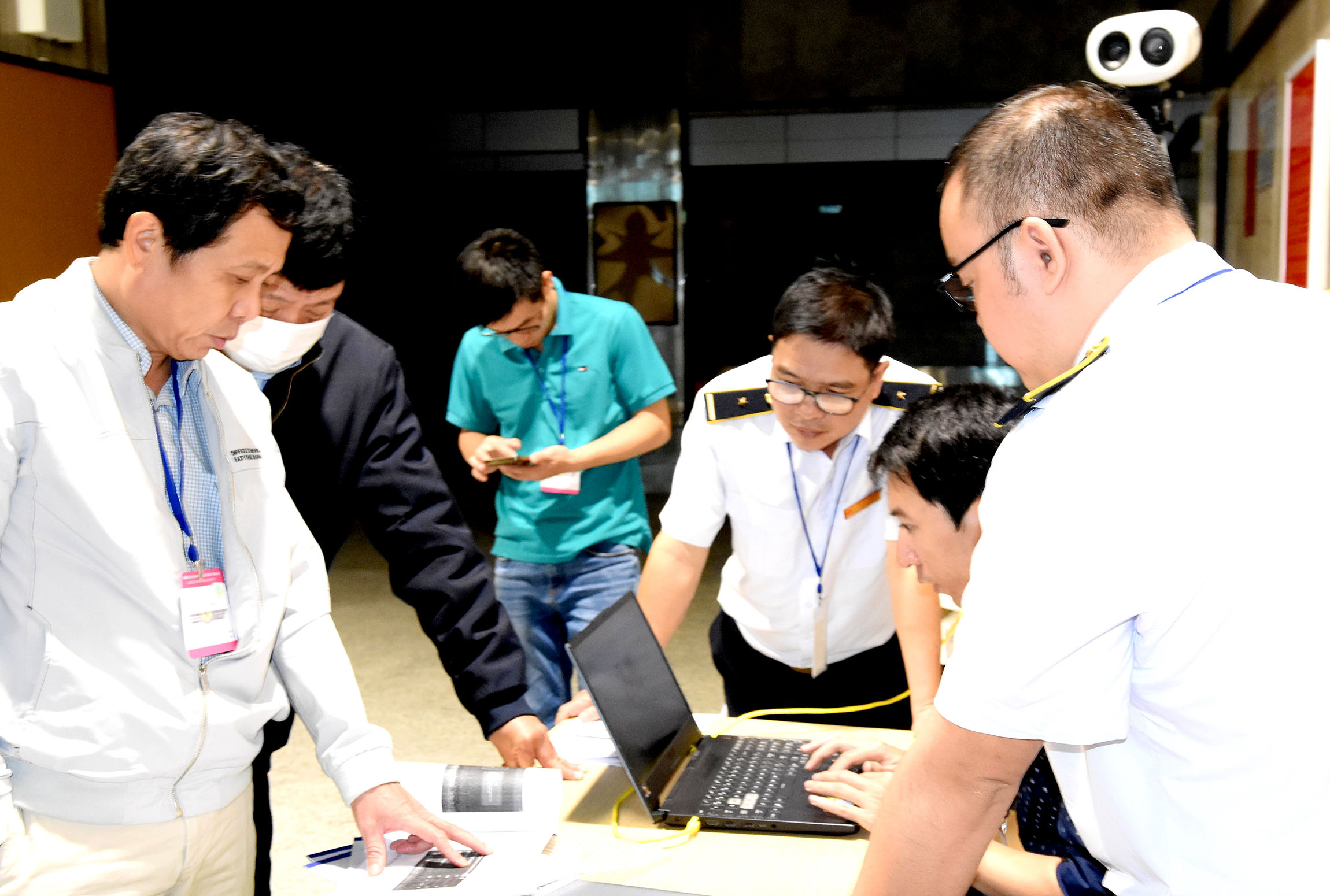 ThS. BS Hồ Xuân Vũ - Phó Giám đốc CDC Huế cùng các bộ phận liên quan kiểm tra mã số và các thông số kỹ thuật của hệ thống đo thân nhiệt.