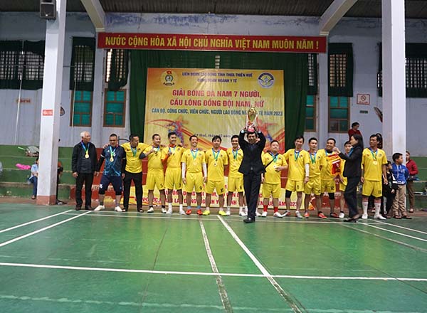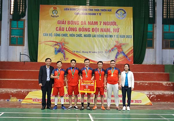 Chiều ngày 25/2 tại Trung tâm Thể thao thành phố Huế, Công đoàn ngành Y tế tổ chức Lễ bế mạc và trao giải cho các đội có thành tích cao tại “Giải Bóng đá Nam 7 người và Giải Cầu lông Đồng đội Nam, Đồng đội Nữ”. Tham dự lễ có đồng chí Trần Thị Minh Nguyệt, Phó Chủ tịch Liên đoàn Lao động tỉnh; các đồng chí trong Ban Giám đốc sở Y tế, Ban Chấp hành Công đoàn Ngành, Hội Cựu Chiến binh, Đoàn TNCSHCM Sở Y tế, các đồng chí Lãnh đạo các TTYT và đơn vị trực thuộc Sở Y tế - Ban Chấp hành Công đoàn cơ sở, cùng toàn thể các vận động viên và đông đảo cổ động viên của 27 đơn vị tham gia giải.