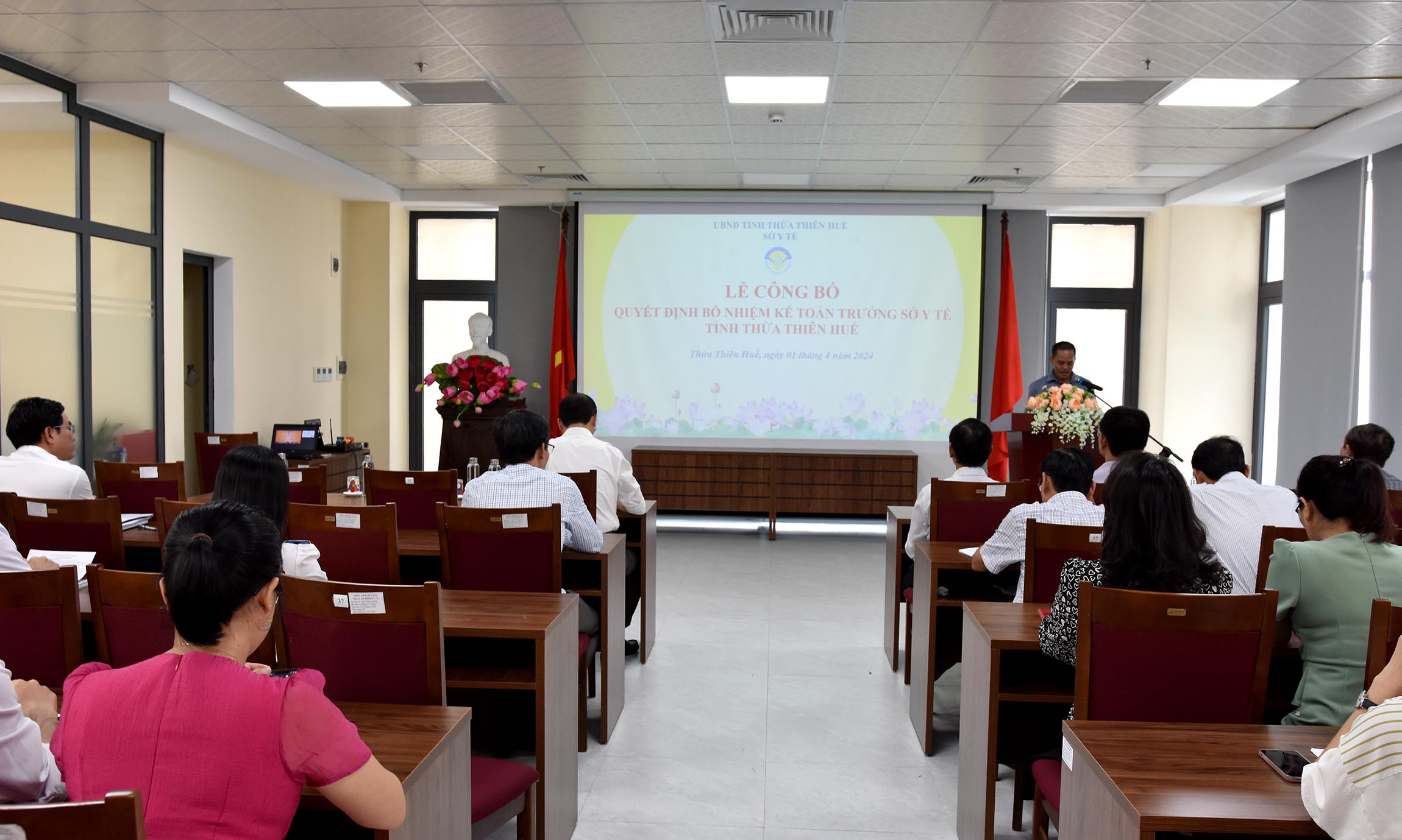 Chiều ngày 01/4/2024, Sở Y tế long trọng tổ chức Lễ Công bố và trao Quyết định bổ nhiệm chức danh Kế toán trưởng Sở Y tế. Tham dự Lễ Công bố có mặt các đồng chí trong Đảng ủy, Ban Giám đốc Sở Y tế, Lãnh đạo các Phòng, cán bộ chủ chốt và chuyên viên của Văn phòng Sở Y tế.
