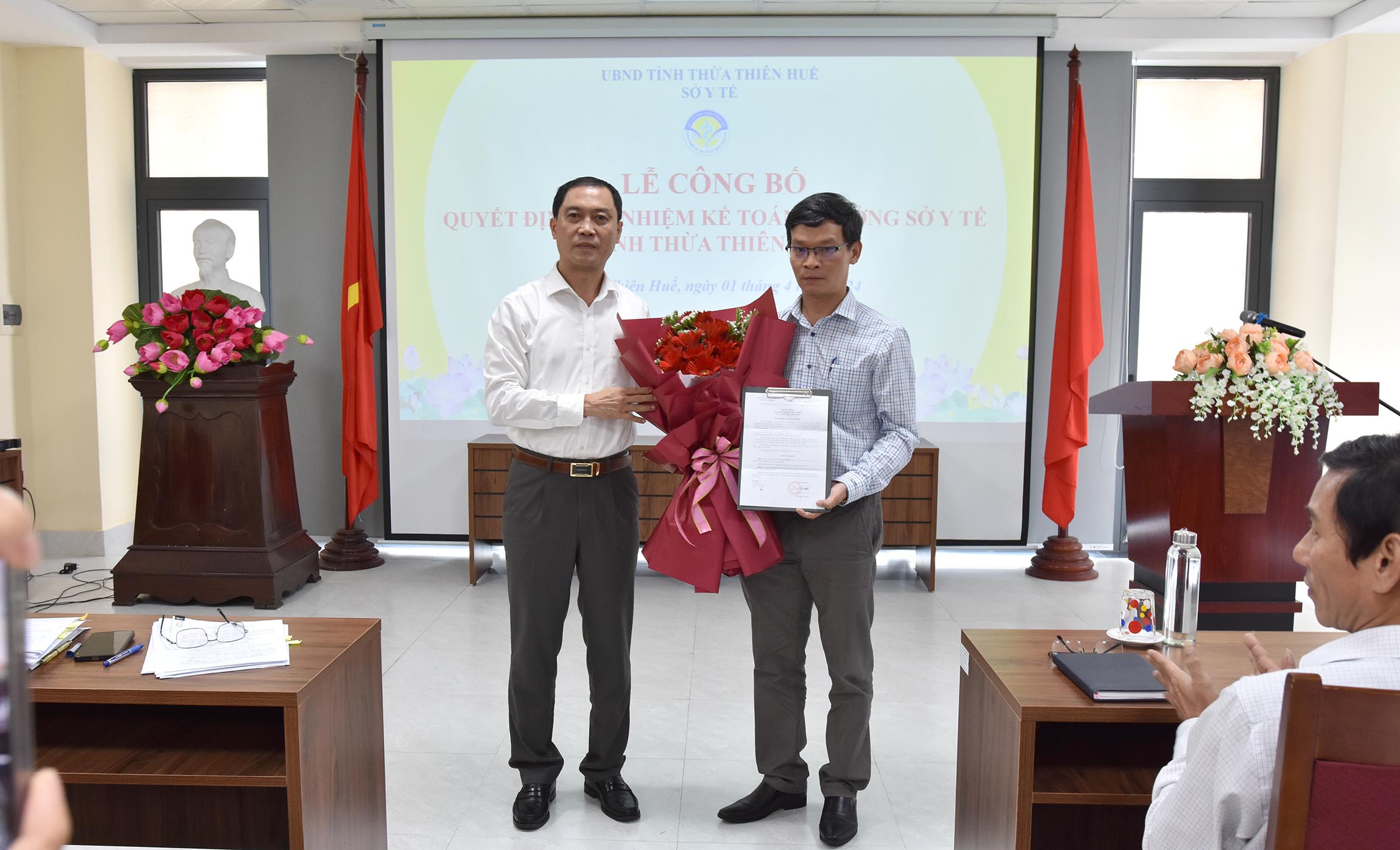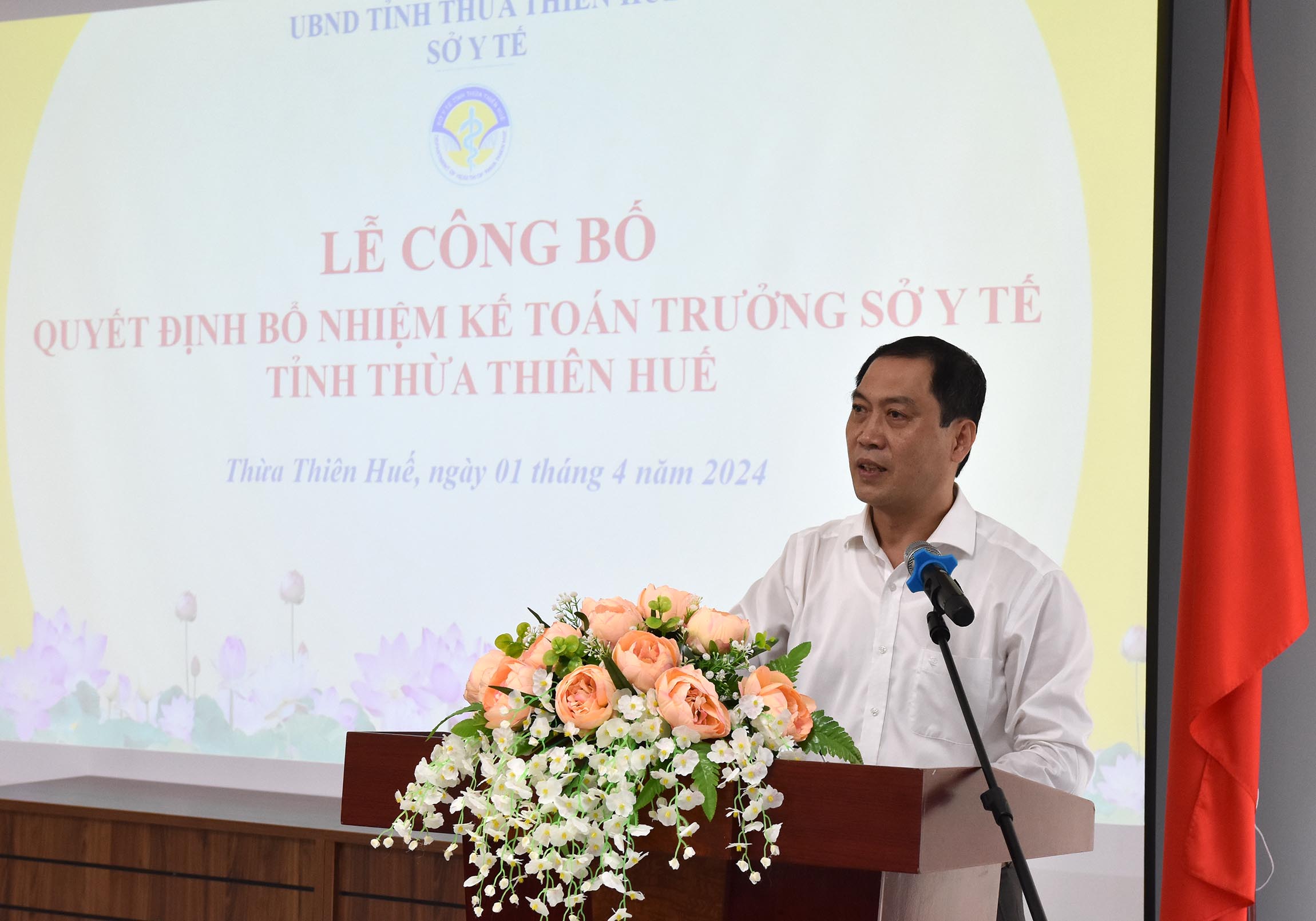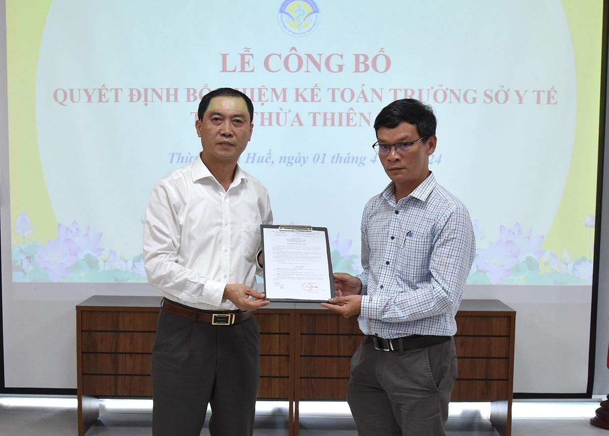 Được sự ủy quyền của Giám đốc Sở Tài chính, Trưởng Phòng Tổ chức cán bộ - BSCKII Thái Văn Tuấn công bố Quyết định số: 953/QĐ-STC ngày 26/3/2024, của Giám đốc Sở Tài chính về việc bổ nhiệm ông Võ Thanh Minh - ThS Kinh tế làm Kế toán trưởng Sở Y tế Thừa Thiên Huế thay ông Lê Thanh An đã hoàn thành công tác nghỉ theo chế độ. Thời hạn bổ nhiệm Kế toán trưởng Sở Y tế là 05 năm kể từ ngày 01/4/2024.