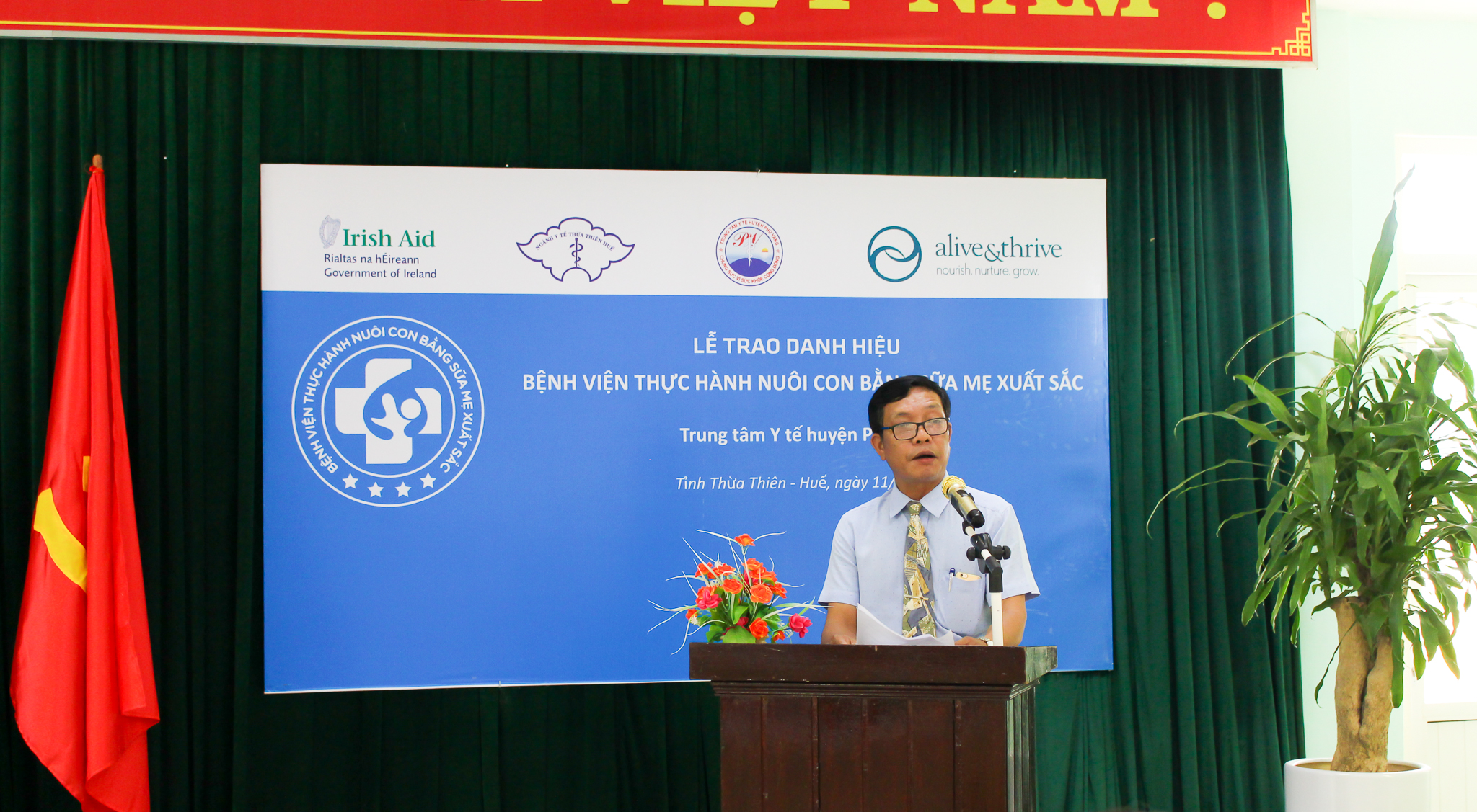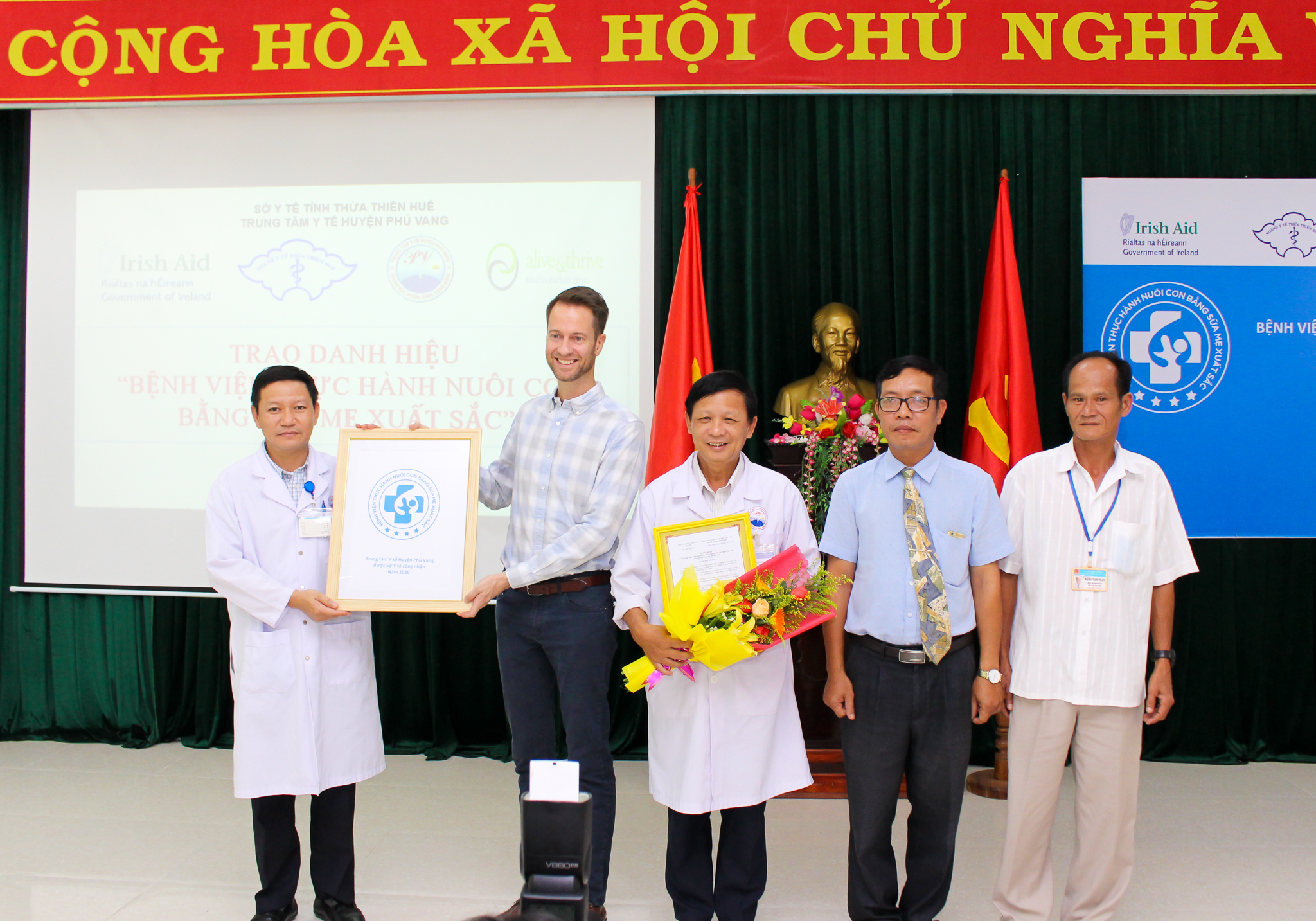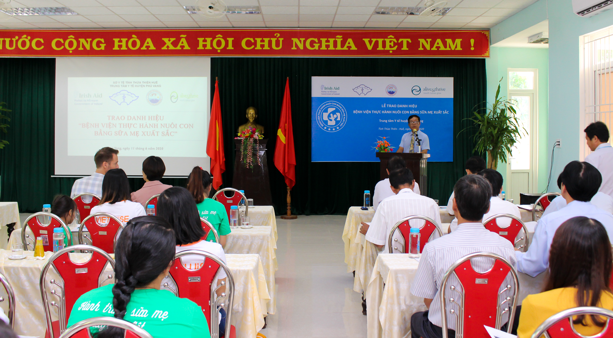 Trong những năm qua ngành Y tế của tỉnh đã chỉ đạo triển khai nhiều nội dung quy trình kỹ thuật về chăm sóc sức khỏe bà mẹ, trẻ em, trong đó có việc thúc đẩy nuôi con bằng sữa mẹ. Đặc biệt từ tháng 3/2019 đến nay được sự hỗ trợ về kỹ thuật, tài chính của tổ chức FHI360 (Alive & thrive) Việt Nam về thực hiện đề án “Bệnh viện thực hành nuôi con bằng sữa mẹ xuất sắc” tại 04 Bệnh viện tuyến huyện (Phú Vang, Nam Đông, Phong Điền, Quảng Điền) trên địa bàn tỉnh Thừa Thiên Huế. Qua 03 đợt đánh giá, giám sát thực tế tại các Bệnh viện và khảo sát sản phụ sau sinh thông qua hệ thống điện thoại. Đến nay Bệnh viện huyện Phú Vang đã đạt được các tiêu chí để Công nhận danh hiệu “Bệnh viện thực hành nuôi con bằng sữa mẹ xuất sắc”. Đây là một danh hiệu hết sức quan trọng nói về “Chất lượng bệnh viện.”