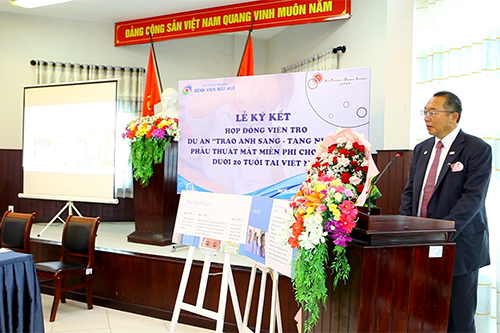 GS.BS Hattori Tadashi – Giám đốc điều hành Tổ chức phòng chống mù lòa Châu Á – APBA phát biểu tại buổi lễ