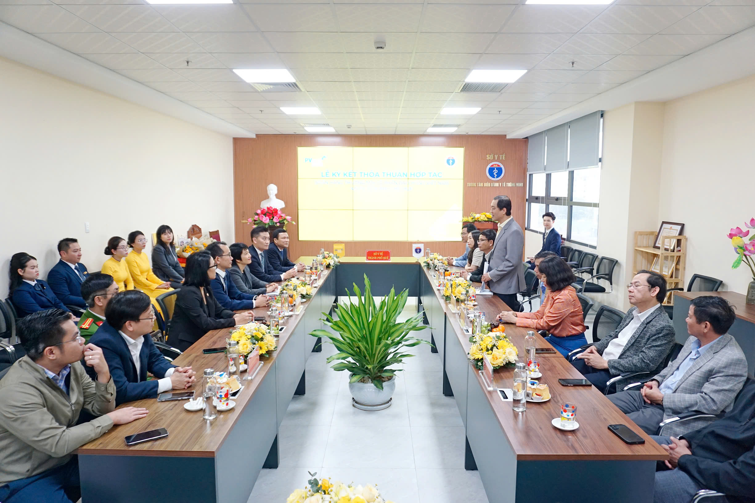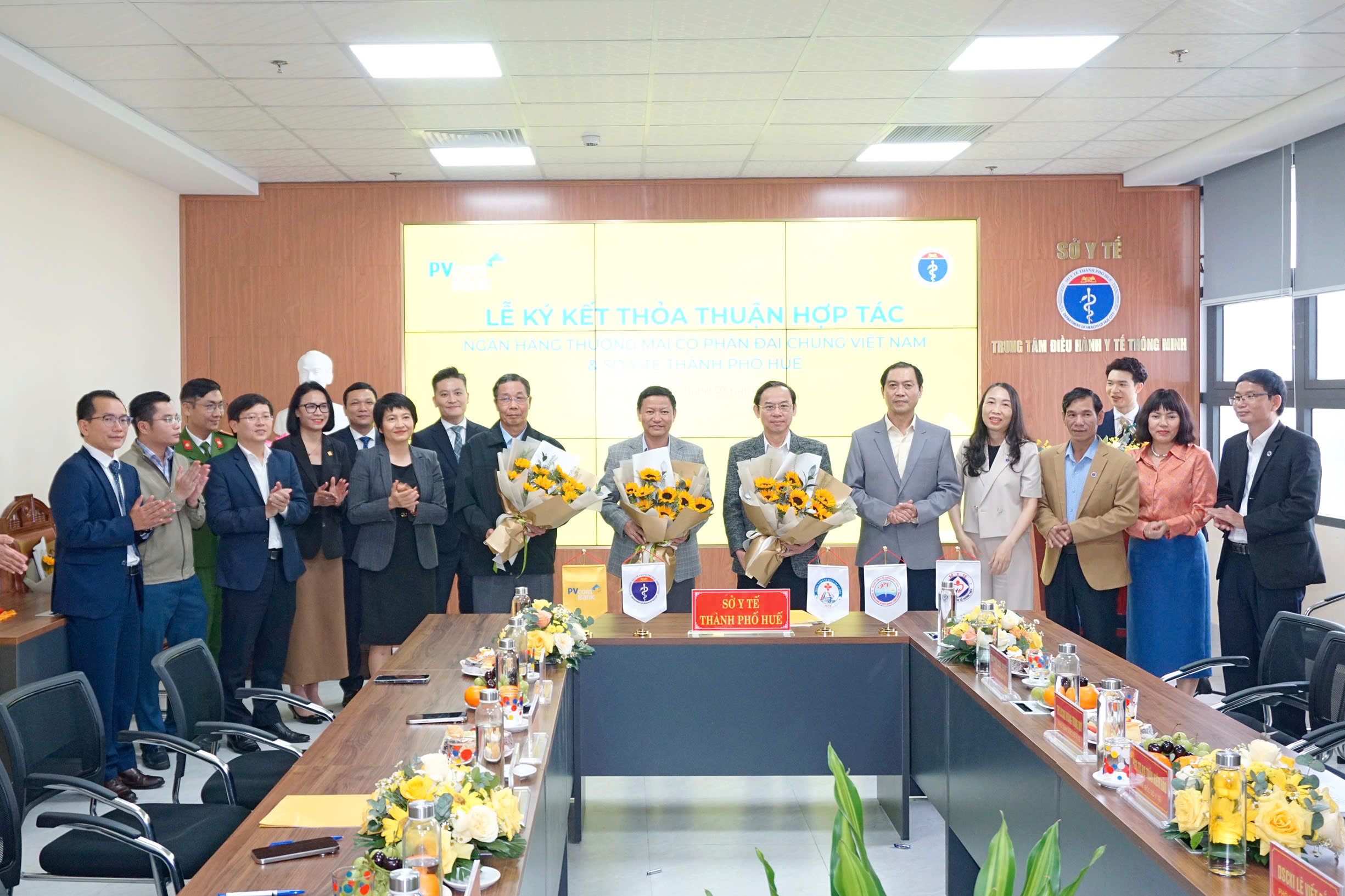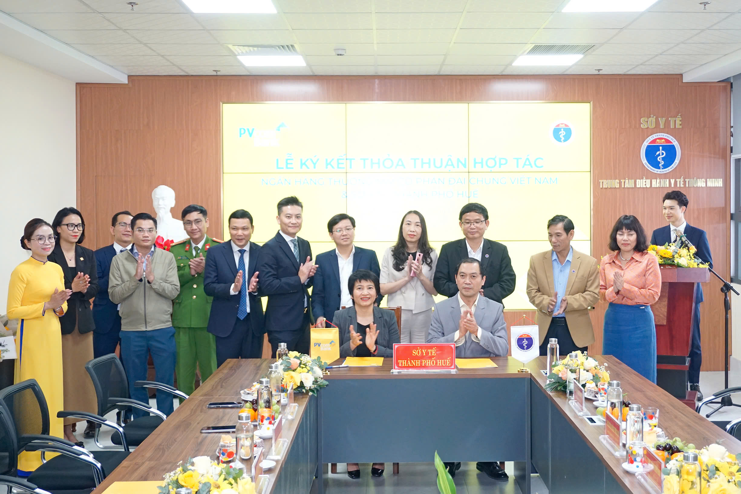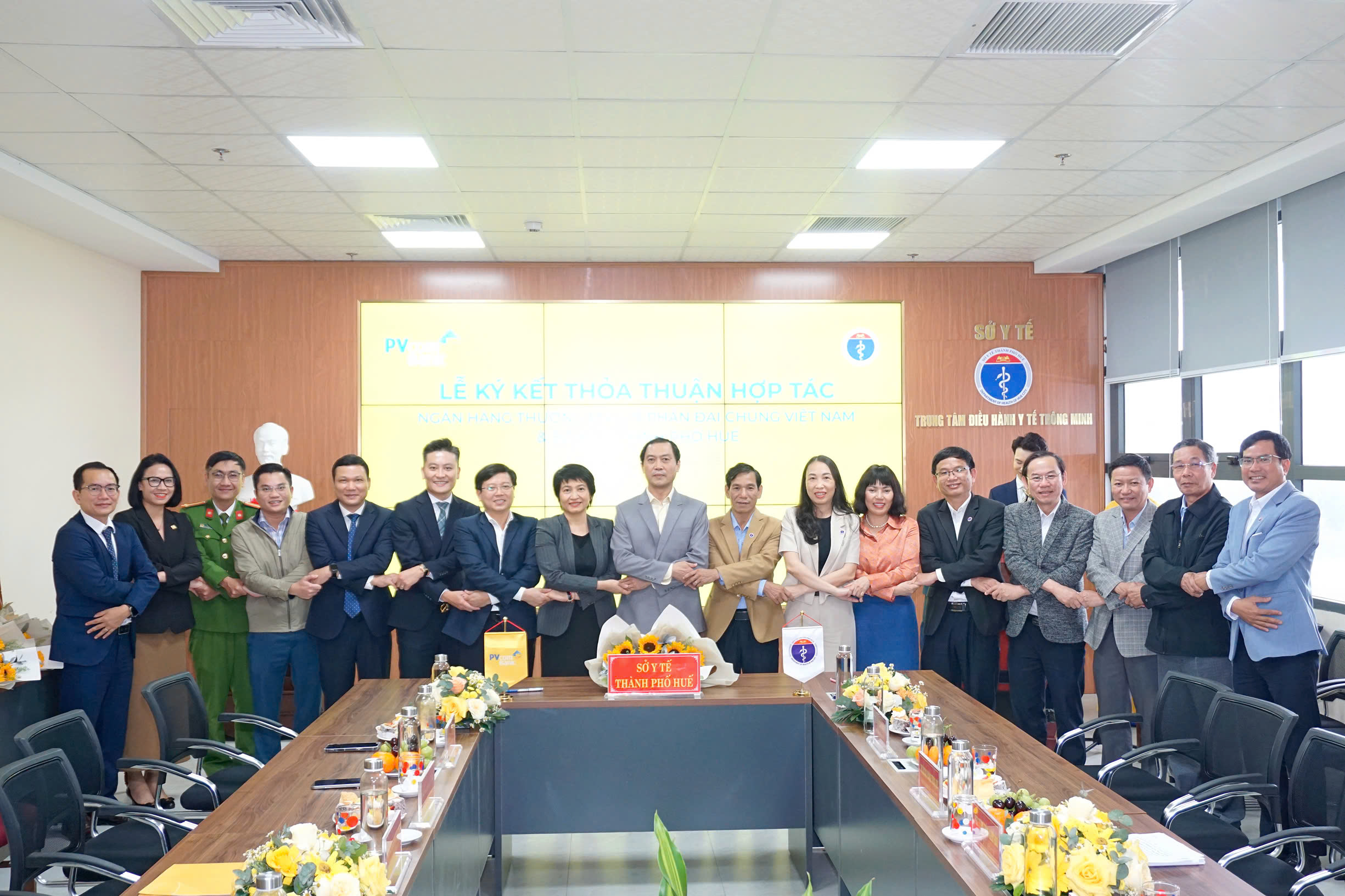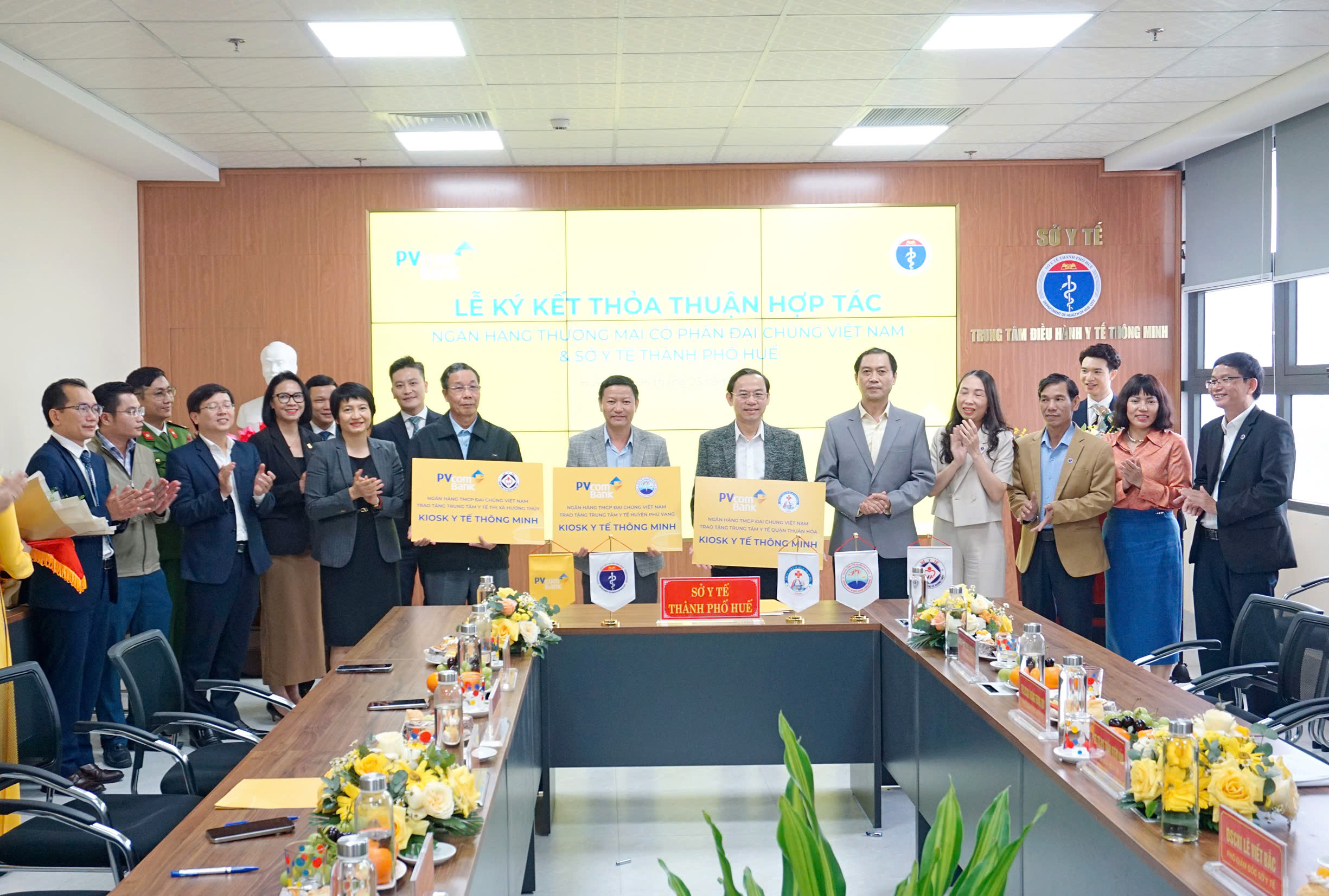 Tại buổi lễ, lãnh đạo Sở Y tế thành phố Huế và Ngân hàng Thương mại cổ phần Đại Chúng Việt Nam (PVcomBank), lãnh đạo 03 Trung tâm y tế đã ký kết biên bản ghi nhớ hợp tác giữa các bên. Cụ thể, PVcomBank cam kết đồng hành cùng Sở Y tế trong công cuộc chuyển đổi số và triển khai giải pháp thanh toán không dùng tiền mặt theo chủ trương của Chính phủ, góp phần hiện đại hóa hệ thống y tế và nâng cao chất lượng chăm sóc sức khỏe cộng đồng. PVcomBank tài trợ Ki ốt y tế thông minh tự phục vụ và chi phí kết nối phần mềm thanh toán viện phí không dùng tiền mặt để góp phần giúp 03 Trung tâm Y tế hiện đại hóa dịch vụ, cải thiện trải nghiệm của bệnh nhân thông qua việc sử dụng công nghệ thông minh nhằm nâng cao chất lượng khám chữa bệnh./.