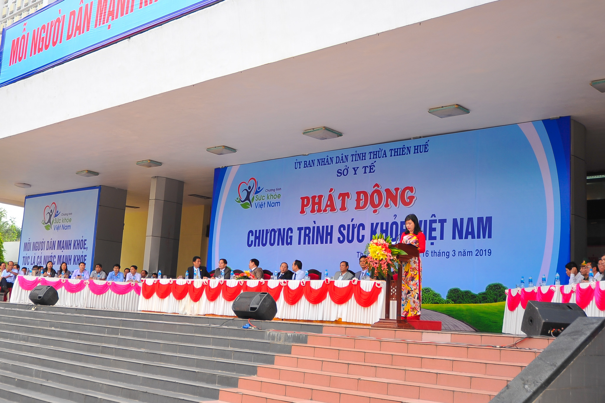 Được sự đồng ý và chỉ đạo của UBND tỉnh Thừa Thiên Huế, ngày 16/03/2019 tại Trung tâm Văn hóa Thông tin Thừa Thiên Huế, Sở Y tế tổ chức lễ Phát động Chương trình Sức khỏe Việt Nam tại tỉnh Thừa Thiên Huế. Đến tham dự có đồng chí Bùi Thanh Hà - Phó Bí thư Thường trực Tỉnh Ủy; đồng chí Phan Ngọc Thọ - Phó Bí thư Tỉnh Ủy - Chủ tịch UBND tỉnh - Trưởng đoàn Đại biểu Quốc hội tỉnh; đồng chí Nguyễn Dung - TUV - Phó Chủ tịch UBND tỉnh; các đồng chí lãnh đạo các Sở, ban ngành cùng với đội ngũ cán bộ- công viên chức khối đoàn thể, lực lượng công an nhân dân, quân đội nhân dân và học sinh sinh viên trên địa bàn tỉnh.