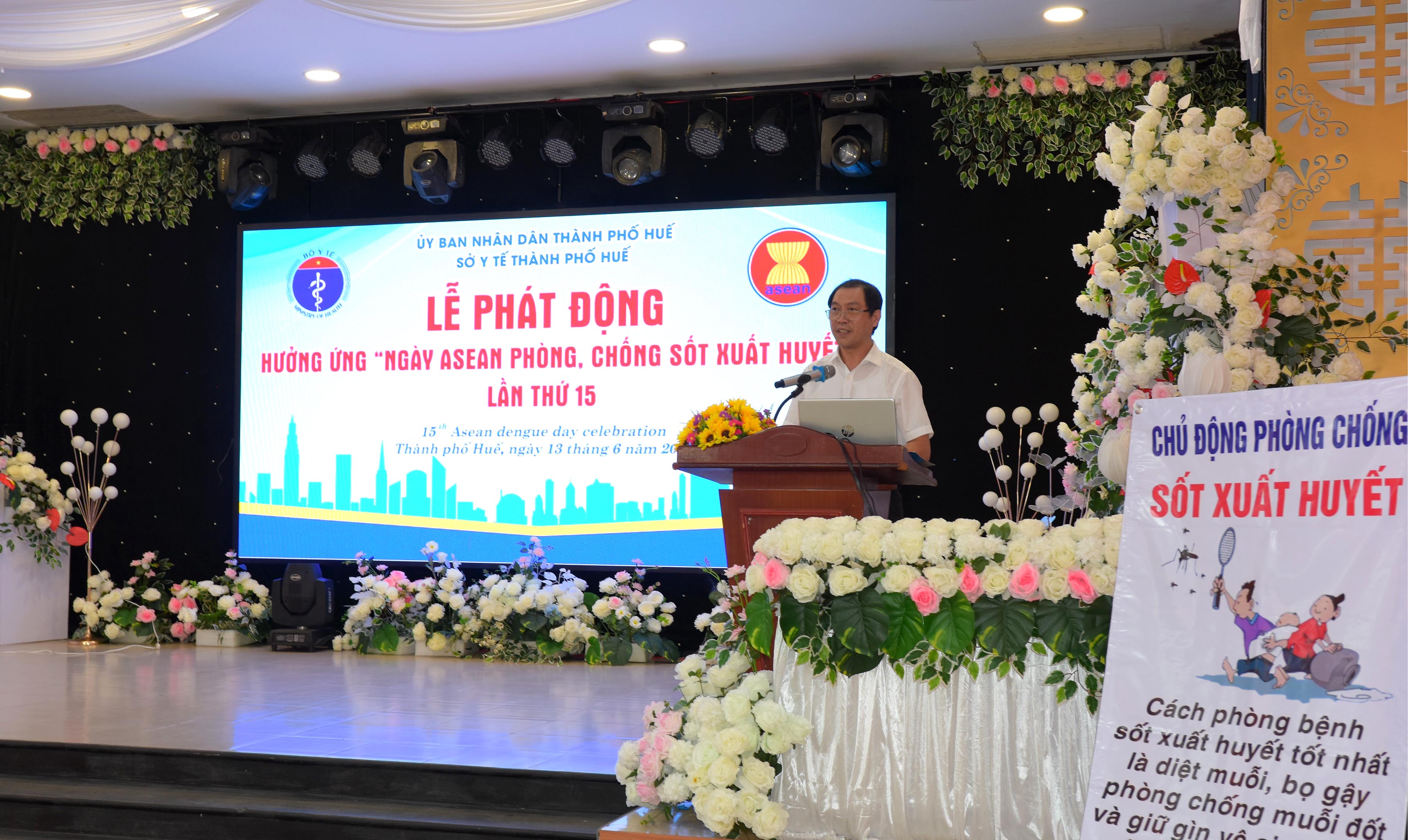 Tại lễ Phát động, PGS.TS Trần Kiêm Hảo - Giám đốc Sở Y tế nhấn mạnh: Dịch bệnh SXH đã, đang và sẽ tiếp tục là gánh nặng đối với các nước khối ASEAN, đối với cộng đồng và nhân dân. SXH không chỉ là vấn đề riêng của ngành Y tế, mà nó ảnh hưởng đến sức khỏe, y tế, kinh tế, văn hóa - xã hội là thách thức của toàn xã hội. Thay mặt ngành Y tế thành phố Huế, Giám đốc Sở Y tế kêu gọi chính quyền các cấp, các cơ quan/đoàn thể, các tổ chức, cộng đồng và các hộ gia đình hãy nâng cao vai trò và ý thức trong công tác phòng chống dịch bệnh nói chung. Phòng chống dịch bệnh SXH là trách nhiệm của chính quyền các cấp, các ban/ngành, đoàn thể và cộng đồng, cùng chung tay với quyết tâm khống chế, ngăn chặn sự lây lan, không để dịch xảy ra và hạn chế đến mức thấp nhất tổn hại do dịch bệnh gây nên.
