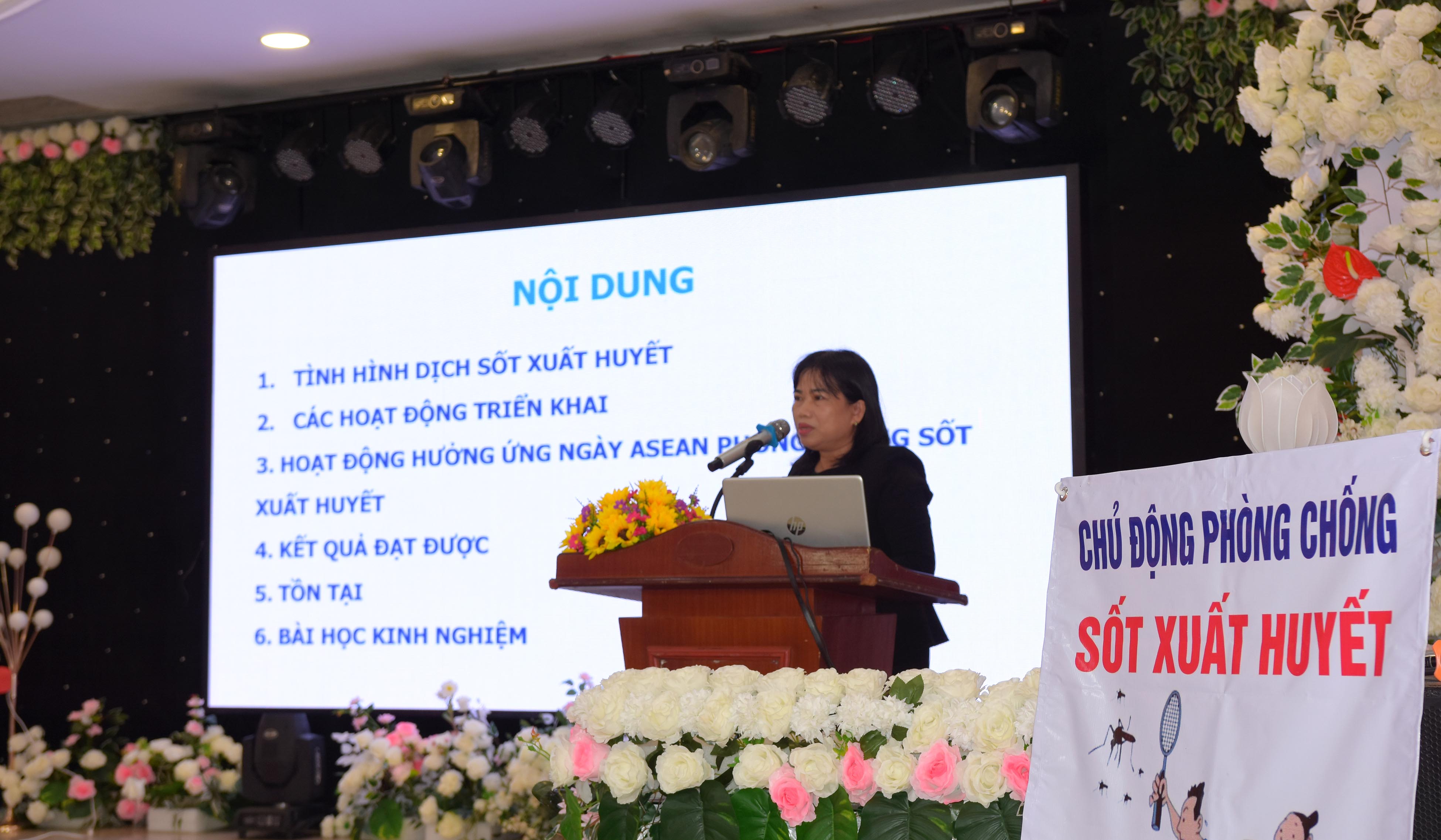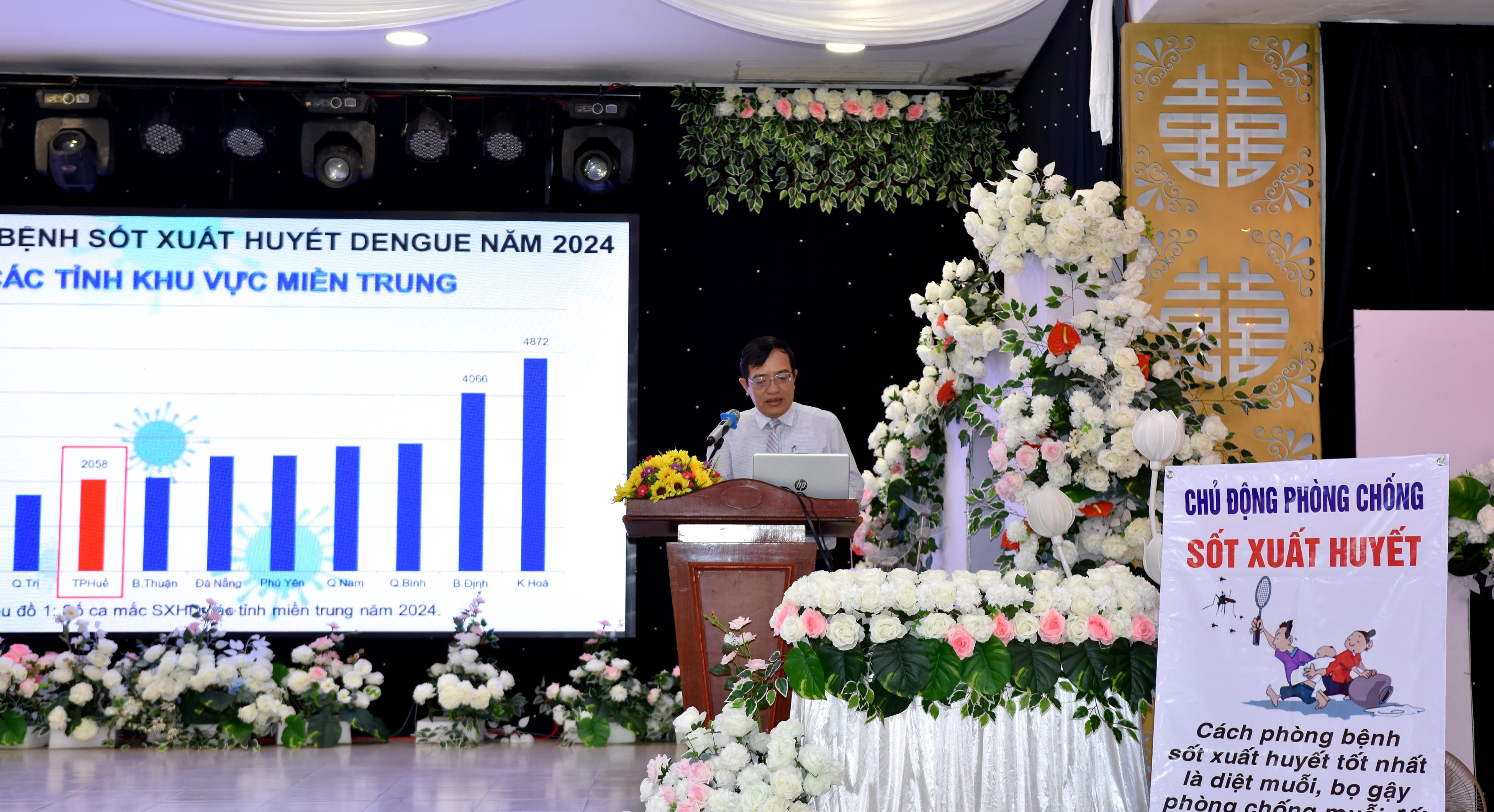 ThS.BSCKII Nguyễn Lê Tâm - Phó Giám đốc phụ trách CDC Huế báo cáo tình hình SXH năm 2024, các giải pháp phòng chống dịch bệnh SXH năm 2025.