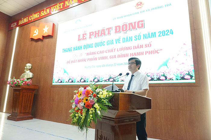Sáng ngày 06/12/ 2024, tại Hội trường Uỷ ban nhân dân thị xã Hương Trà, Sở Y tế phối hợp với Ủy ban Nhân dân thị xã Hương Trà tổ chức Lễ phát động hưởng ứng Tháng hành động Quốc gia về Dân số năm 2024.