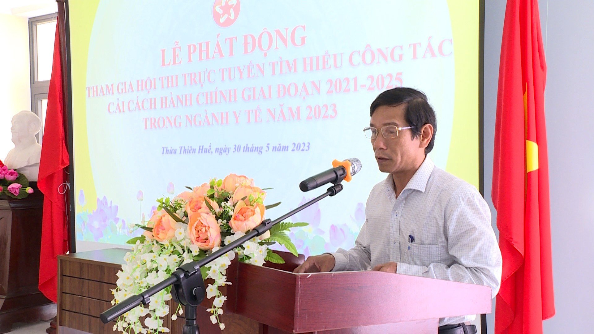 Thực hiện Kế hoạch số 102/KH-UBND ngày 17/3/2023 của UBND tỉnh về tổ chức Hội thi trực tuyến tìm hiểu công tác cải cách hành chính giai đoạn 2021 - 2025 trong cán bộ, công chức, viên chức tỉnh Thừa Thiên Huế năm 2023. Chiều ngày 30/05/2023, Sở Y tế tỉnh Thừa Thiên Huế đã tổ chức Lễ phát động tham gia Hội thi trực tuyến tìm hiểu công tác cải cách hành chính giai đoạn 2021 - 2025 trong công chức, viên chức và người lao động Sở Y tế năm 2023.