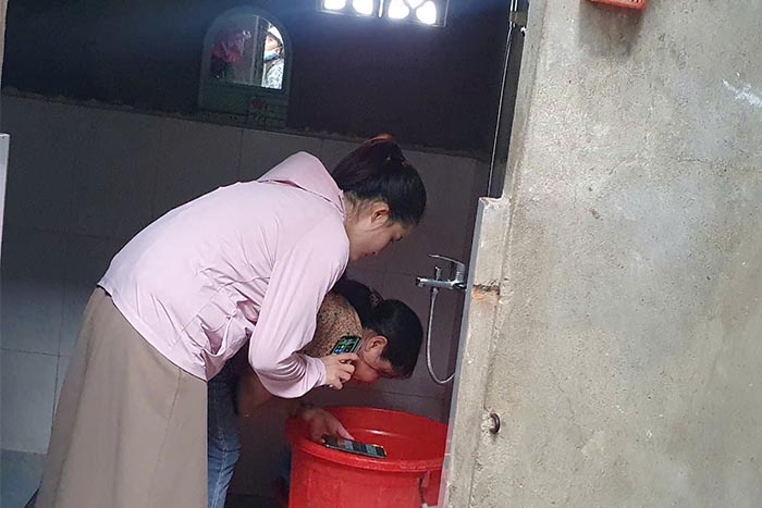 Hướng dẫn CTV kiểm tra vật chứa có lăng quăng tại nhà người dân ở Quảng Điền