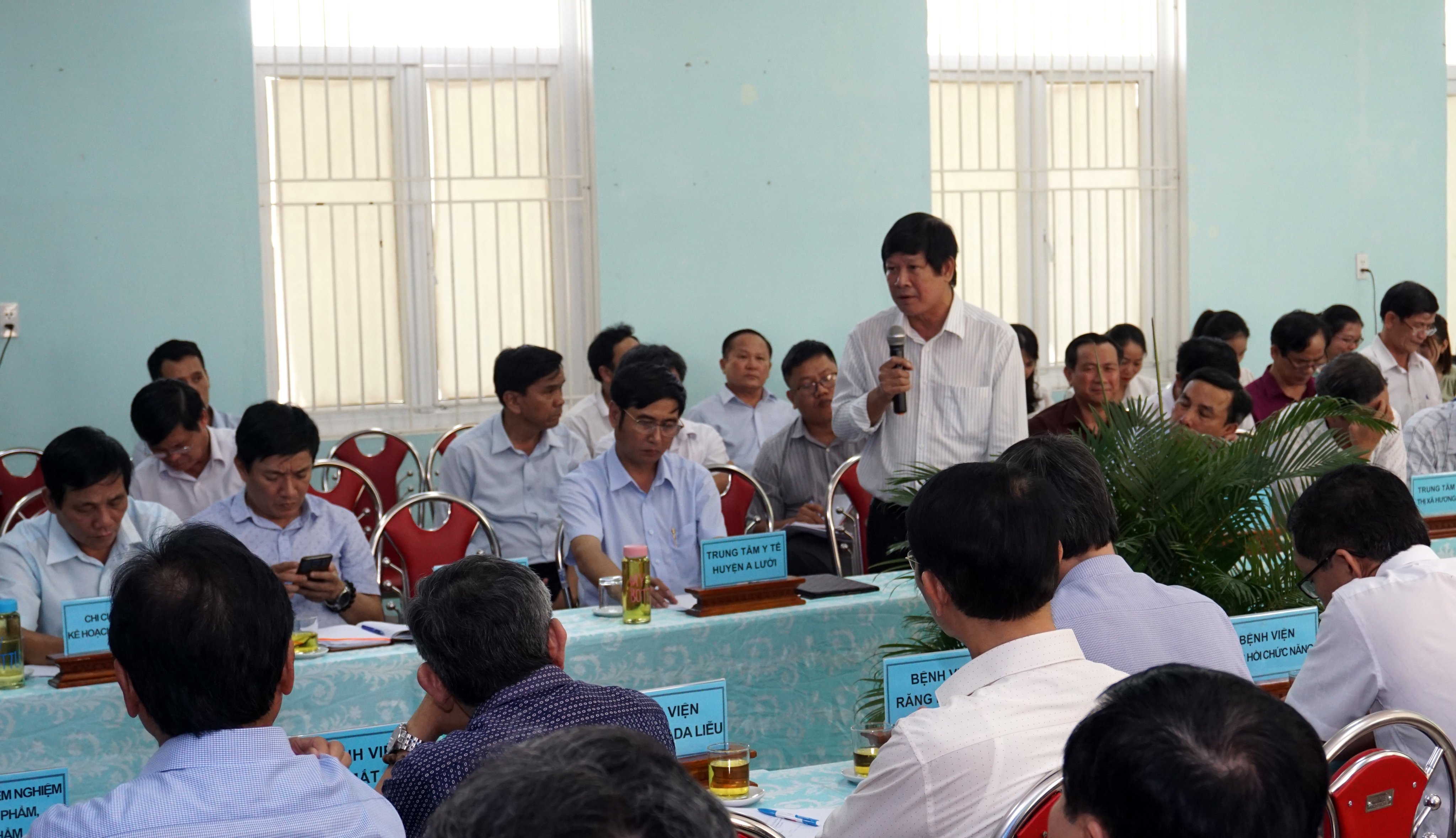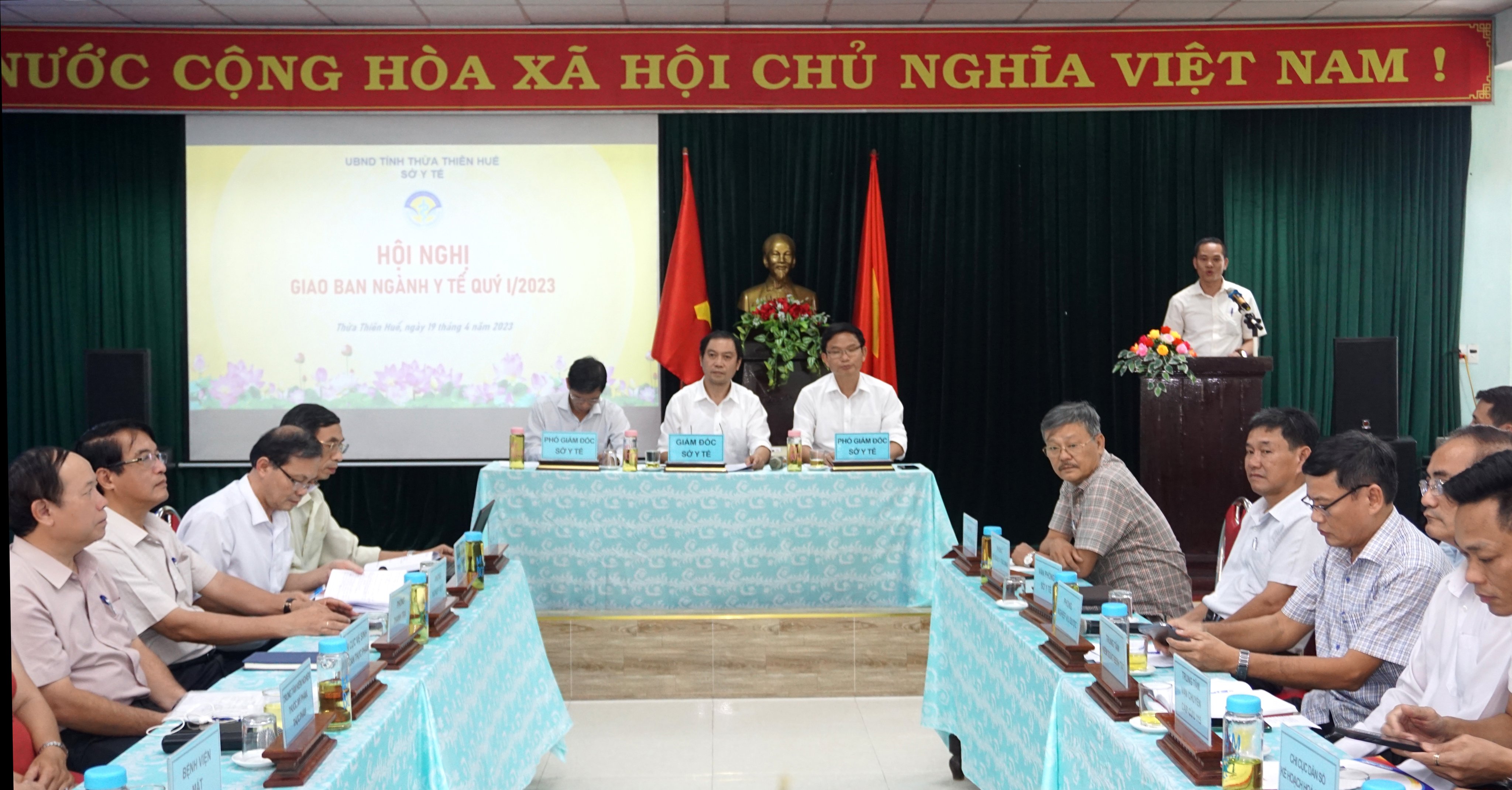 Chiều ngày 19/4/2023, tại TTYT huyện Phú Vang, Sở Y tế tỉnh Thừa Thiên Huế tổ chức Hội nghị Giao ban Ngành Y tế quý I/2023, PGS.TS.BS Trần Kiêm Hảo cùng Ban Giám đốc sở Y tế chủ trì hội nghị. Tham dự hội nghị có đại diện lãnh đạo và các phòng liên quan BHXH tỉnh; Chánh văn phòng, Trưởng/phó các phòng chức năng của Sở Y tế; Giám đốc, cán bộ phụ trách công tác Kế hoạch, Dược và Tài chính của 9 TTYT huyện/thị xã/thành phố, 9 BV đa khoa/chuyên khoa tuyến tỉnh, và 7 đơn vị trực thuộc sở Y tế.