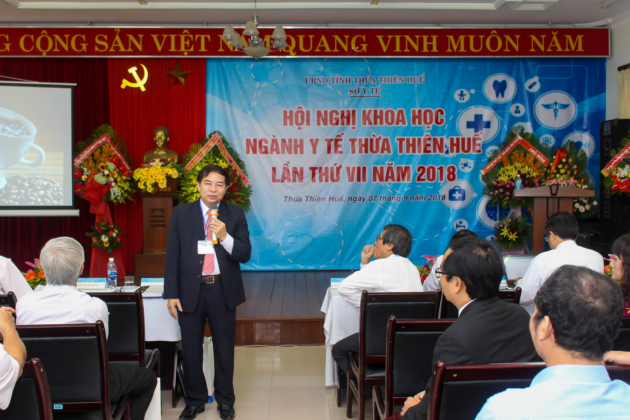 Phát biểu khai mạc hội nghị, TS. Nguyễn Nam Hùng - Giám đốc Sở Y tế nhấn mạnh: Sau thành công của 6 kỳ hội nghị, hội nghị lần này tiếp tục hướng đến mục tiêu thông báo, tổng kết, đánh giá các kết quả hoạt động nghiên cứu, ứng dụng khoa học kỹ thuật, những thành tựu mới trong công tác nghiên cứu, chuyển giao công nghệ, đào tạo nguồn nhân lực, khám chữa bệnh và y tế dự phòng, tạo điều kiện cho cán bộ nhân viên ngành y tế tỉnh có cơ hội giao lưu, chia sẻ kinh nghiệm về các kết quả nghiên cứu khoa học kỹ thuật. Hội nghị cũng là cầu nối giữa các thầy, các nhà khoa học, các cán bộ công chức ngành y tế Thừa Thiên Huế trong việc trao đổi thông tin, nhằm thúc đẩy vai trò của khoa học – kỹ thuật, góp phần vào sự nghiệp phát triển sự nghiệp của ngành y tế tỉnh.