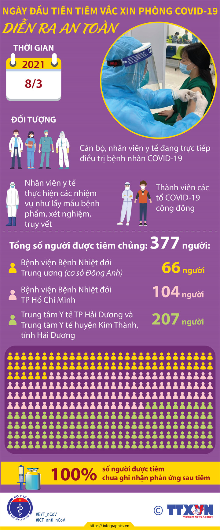 Ngày đầu tiên tiêm vắc xin phòng Covid-19 diễn ra an toàn