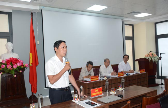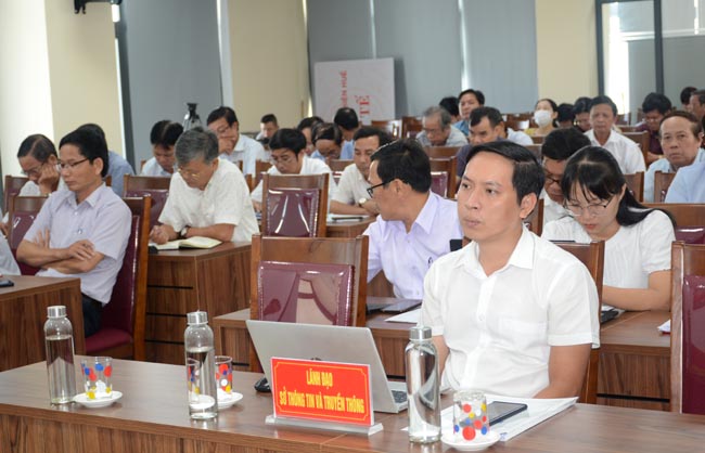 Lãnh đạo sở Thông tin và truyền thông, lãnh đạo các đơn vị, phòng chức năng sở Y tế tham luận tại hội nghị.