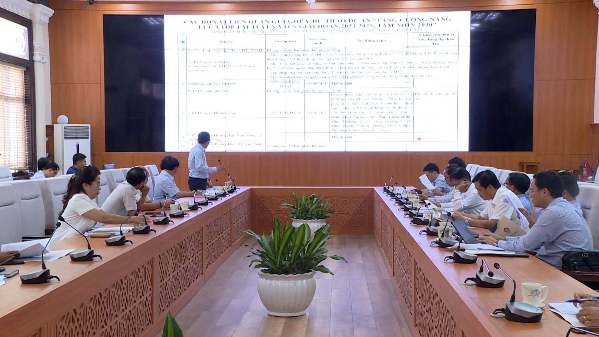 Đề án “Tăng cường năng lực y tế dự phòng tại tuyến y tế cơ sở giai đoạn 2023-2025, tầm nhìn 2030” tại tỉnh Thừa Thiên Huế với mục tiêu là Đầu tư xây dựng và phát triển mạng lưới y tế dự phòng (YTDP) tuyến cơ sở nhằm đảm bảo đủ năng lực dự báo, giám sát và phát hiện sớm, khống chế kịp thời, có hiệu quả các dịch bệnh; các bệnh không lây nhiễm, kiểm soát các yếu tố nguy cơ ảnh hưởng tới sức khỏe cộng đồng; nâng cao chất lượng dịch vụ y tế ngang tầm các nước Đông Nam Á, đáp ứng nhu cầu bảo vệ, chăm sóc sức khỏe ngày càng cao và đa dạng của nhân dân. Các mục tiêu cụ thể là Đầu tư xây dựng, cải tạo trụ sở làm việc cho YTDP tuyến huyện, Trạm Y tế tuyến xã đáp ứng các tiêu chuẩn theo quy định. Cung cấp trang thiết bị thực hiện nhiệm vụ của YTDP tuyến huyện, Trạm Y tế tuyến xã đáp ứng các tiêu chuẩn theo quy định. Nâng cao năng lực cho đội ngũ cán bộ YTDP tuyến y tế cơ sở đủ năng lực để đáp ứng các nhiệm vụ được giao. Tại cuộc họp cũng đã nghe ý kiến tham gia của lãnh đạo Sở Nội vụ, Sở Tài chính, Sở Kế hoạch và Đầu tư; lãnh đạo UBND và Trung tâm Y tế một số huyện, thành phố Huế về các nội dung như nguồn nhân lực, kinh phí, mạng lưới Công tác viên, y tế thôn, tổ dân phố; làm rõ thêm tính hiệu lực, hiệu quả của Đề án,..