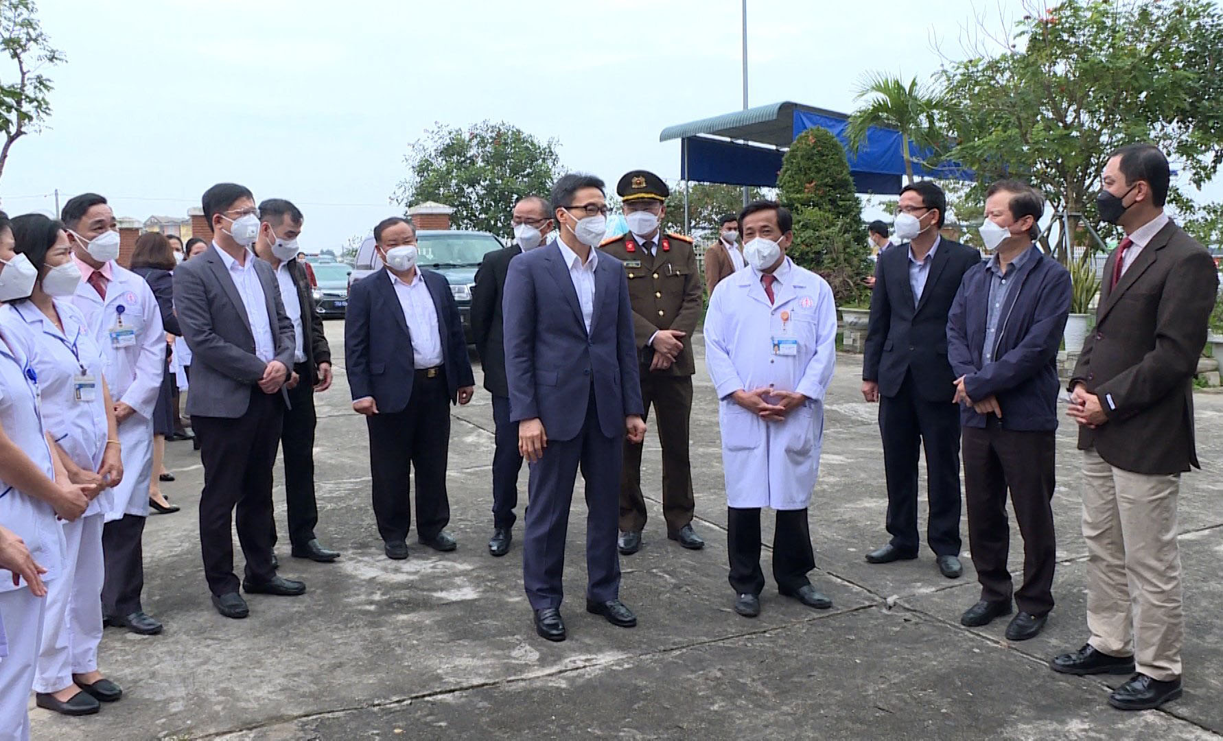 Chiều ngày 21/01/2022, Phó Thủ tướng Chính phủ Vũ Đức Đam cùng đoàn công tác đã đến thăm cơ sở điều trị bệnh nhân Covid-19 Bệnh viện dã chiến Hương Sơ (cơ sở bệnh viện Phổi), về phía tỉnh Thừa Thiên Huế có ông Lê Trường Lưu -UVTƯ Đảng, Bí thư Tỉnh ủy; ông Nguyễn Thanh Bình - Phó Chủ tịch UBND tỉnh; PGS.TS Trần Kiêm Hảo - Giám đốc Sở Y tế cùng lãnh đạo phòng ban đơn vị liên quan.