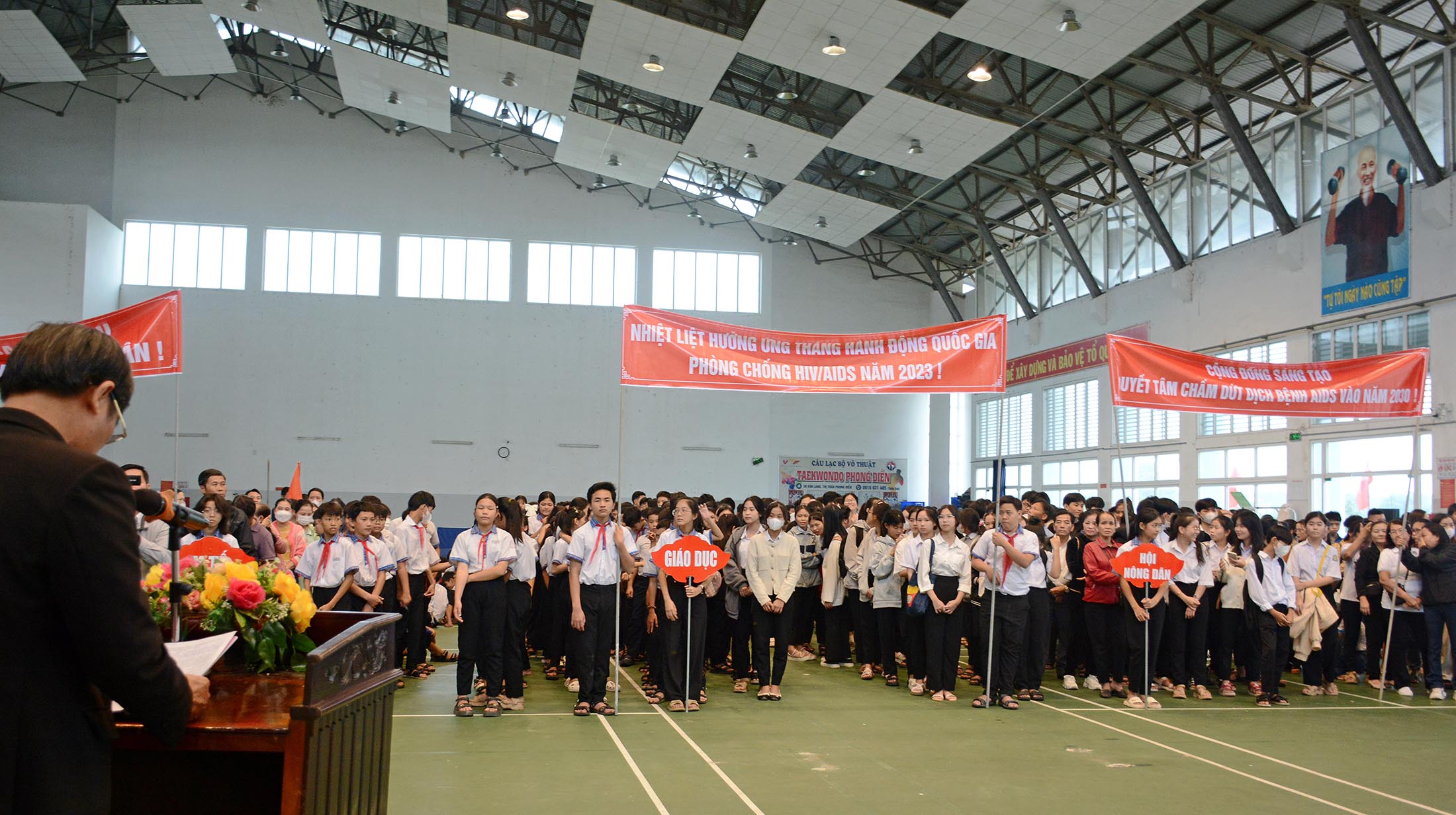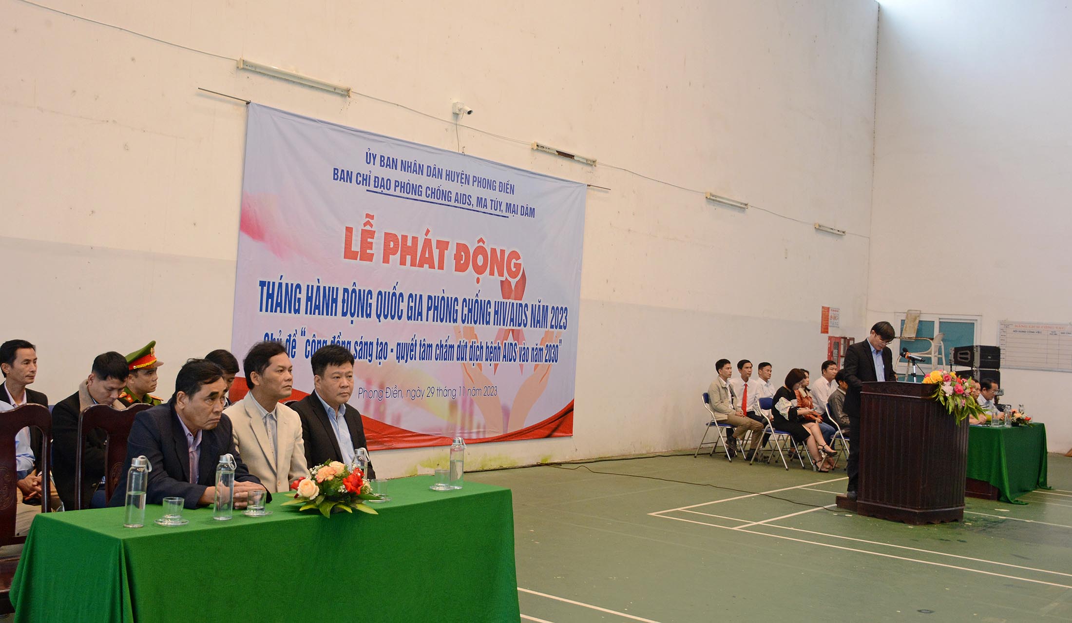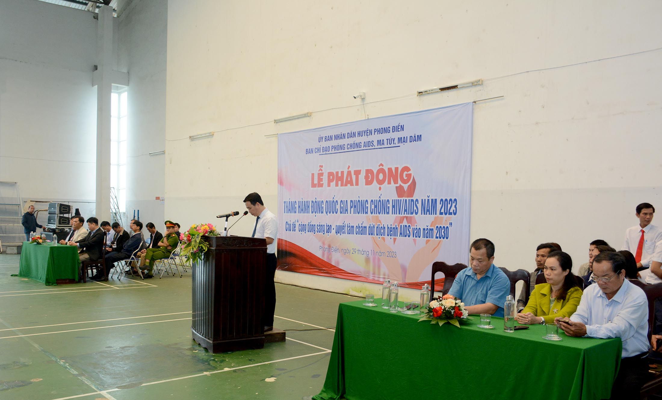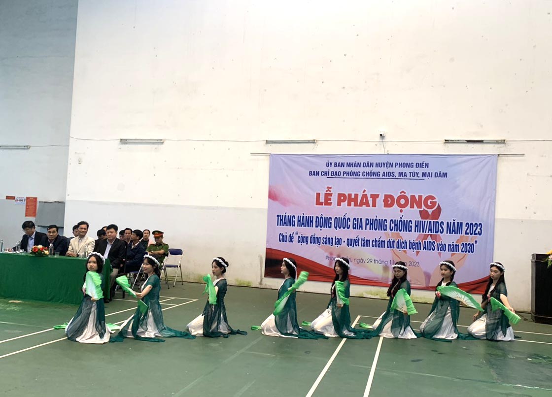 Chiều ngày 29/11/2023 tại Nhà Thi đấu huyện Phong Điền, Ban Chỉ đạo Phòng, chống AIDS, ma túy và mại dâm huyện Phong Điền, tổ chức Lễ phát động Ngày Thế giới phòng, chống HIV/AIDS - 01/12/2023. Tham dự Lễ Phát động có lãnh đạo Trung Tâm Kiểm soát bệnh tật tỉnh, TTYT huyện Quảng Điền và thị xã Hương Trà; Lãnh đạo UBND và các thành viên Ban chỉ đạo Phòng, chống AIDS, tệ nạn ma túy và mại dâm, các đơn vị liên quan thuộc huyện Phong Điền; lãnh đạo đại diện các cơ quan, ban ngành/đoàn thể, giáo viên/học sinh các xã/thị trấn huyện Phong Điền cùng tham dự.
