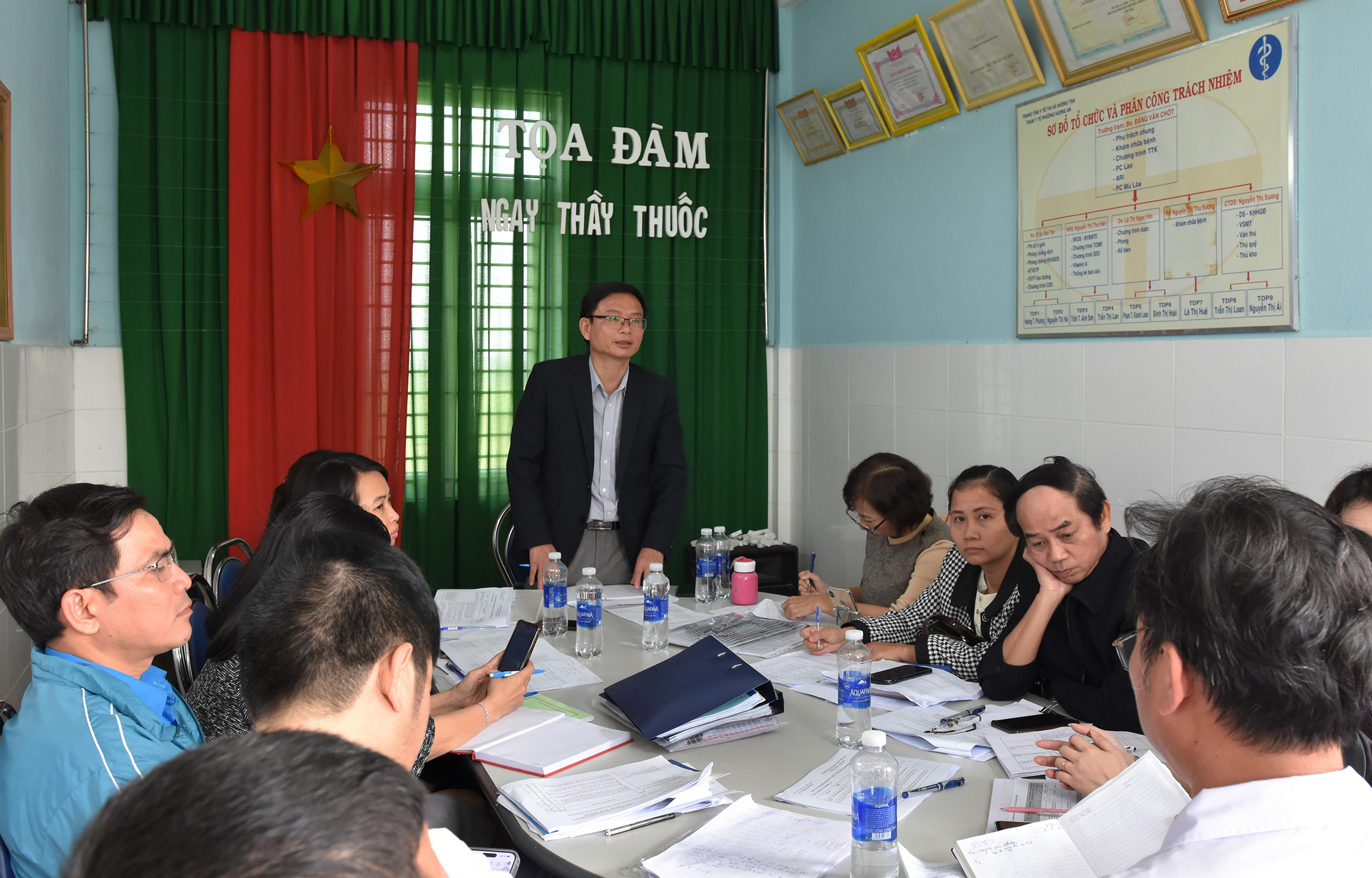 ThS.BSCKII Hoàng Trọng Quý - Phó Giám đốc Sở Y tế chỉ đạo và phân công các bộ phận/thành viên phúc tra theo từng tiêu chí.