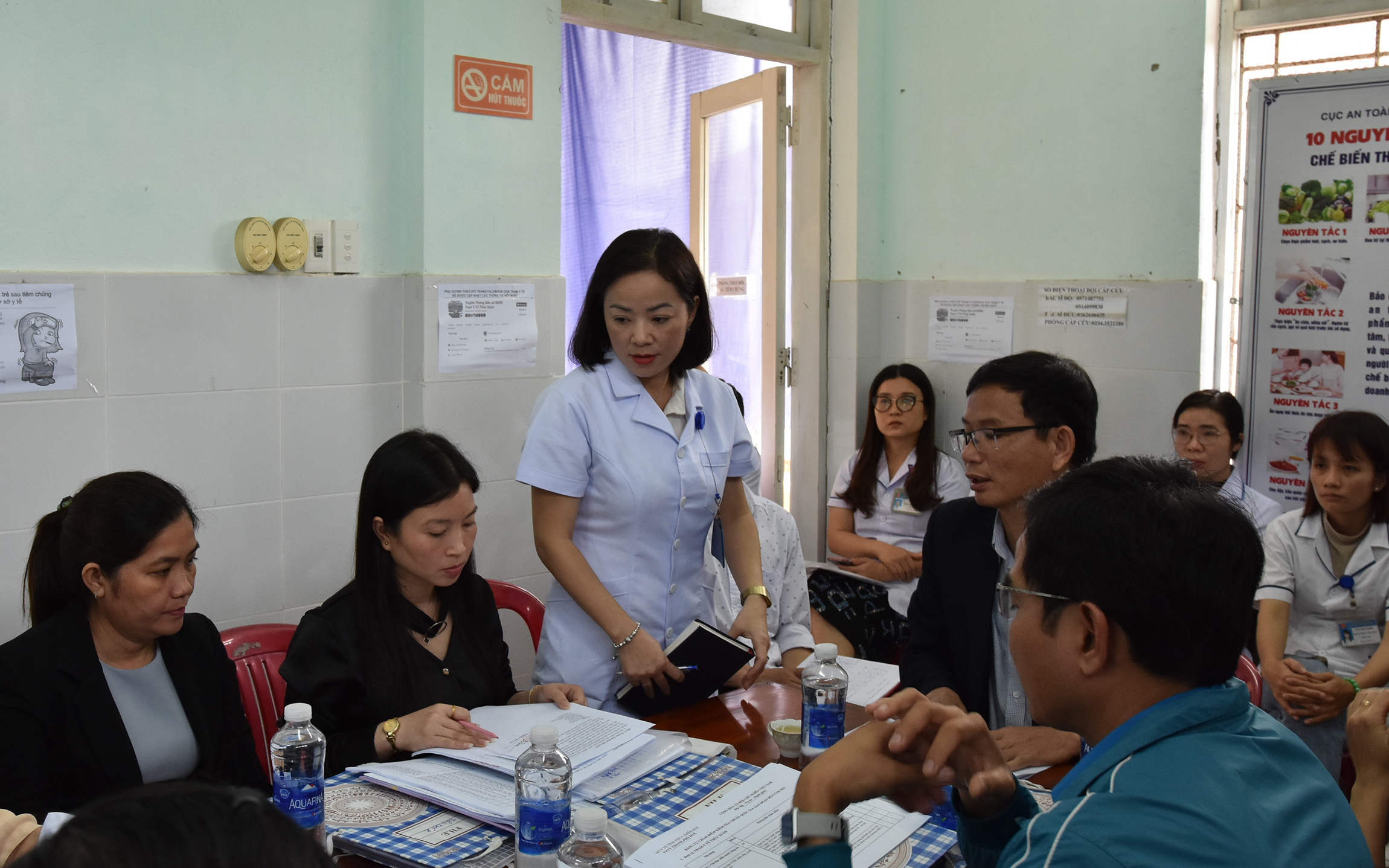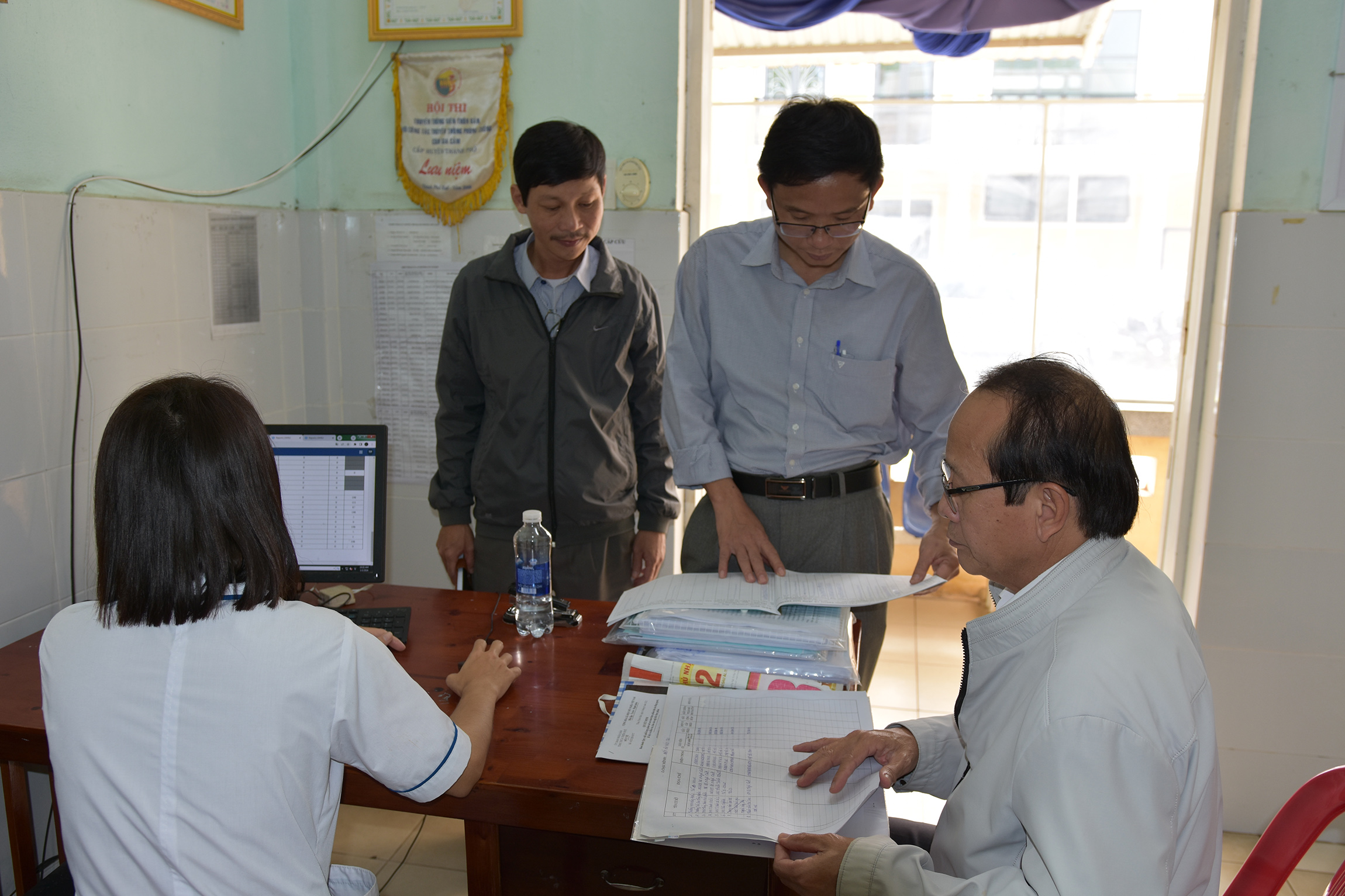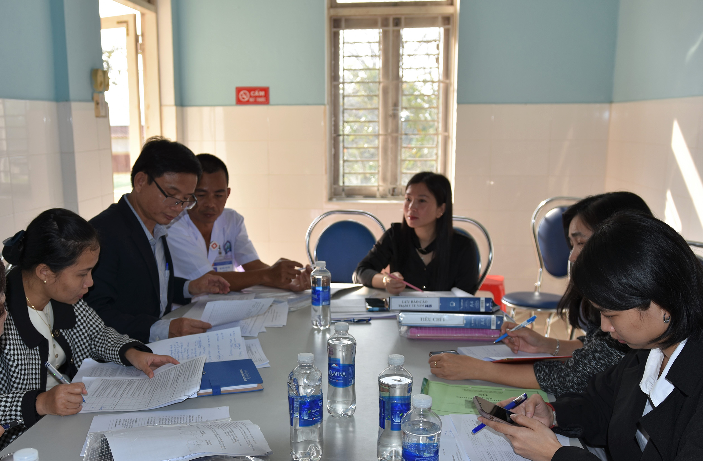 Đoàn phúc tra tiến hành kiểm tra, đánh giá rà soát, tổng hợp và thẩm định các hồ sơ, tài liệu, số liệu để chứng minh cho việc đạt các tiêu chí theo hướng dẫn về công tác y tế đã được triển khai tại địa phương, qua công tác lưu trữ văn thư, quản lý hệ thống hồ sơ, sổ sách theo dõi các văn bản chỉ đạo của địa phương, công tác khám chữa bệnh, quản lý thuốc/trang thiết bị, công tác y tế dự phòng, chăm sóc BMTE, ATVSTP, DS-KHHGĐ, công nghệ thông tin...