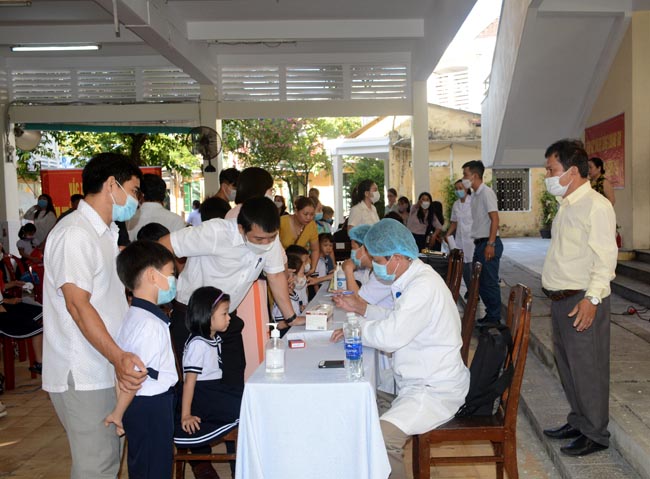 Hình ảnh triển khai tiêm chủng tại trường Tiểu học Lê Lợi - thành phố Huế