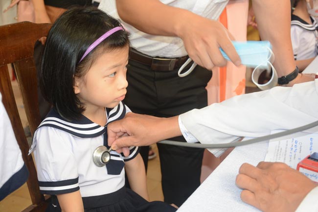 Bác sĩ theo dõi tình trạng sức khỏe các cháu sau tiêm phòng.