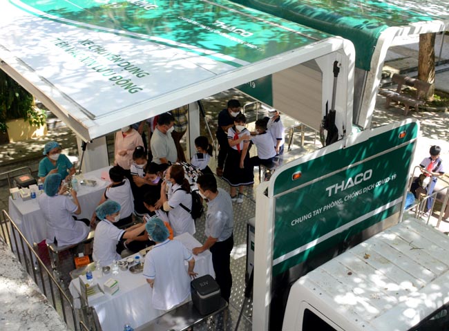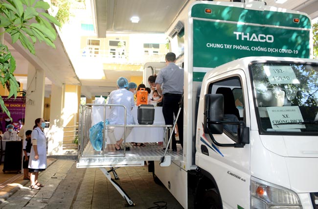 Đội tiêm chủng cơ động đang triển khai tiêm chủng trên xe chuyên dụng tiêm vắc xin lưu động