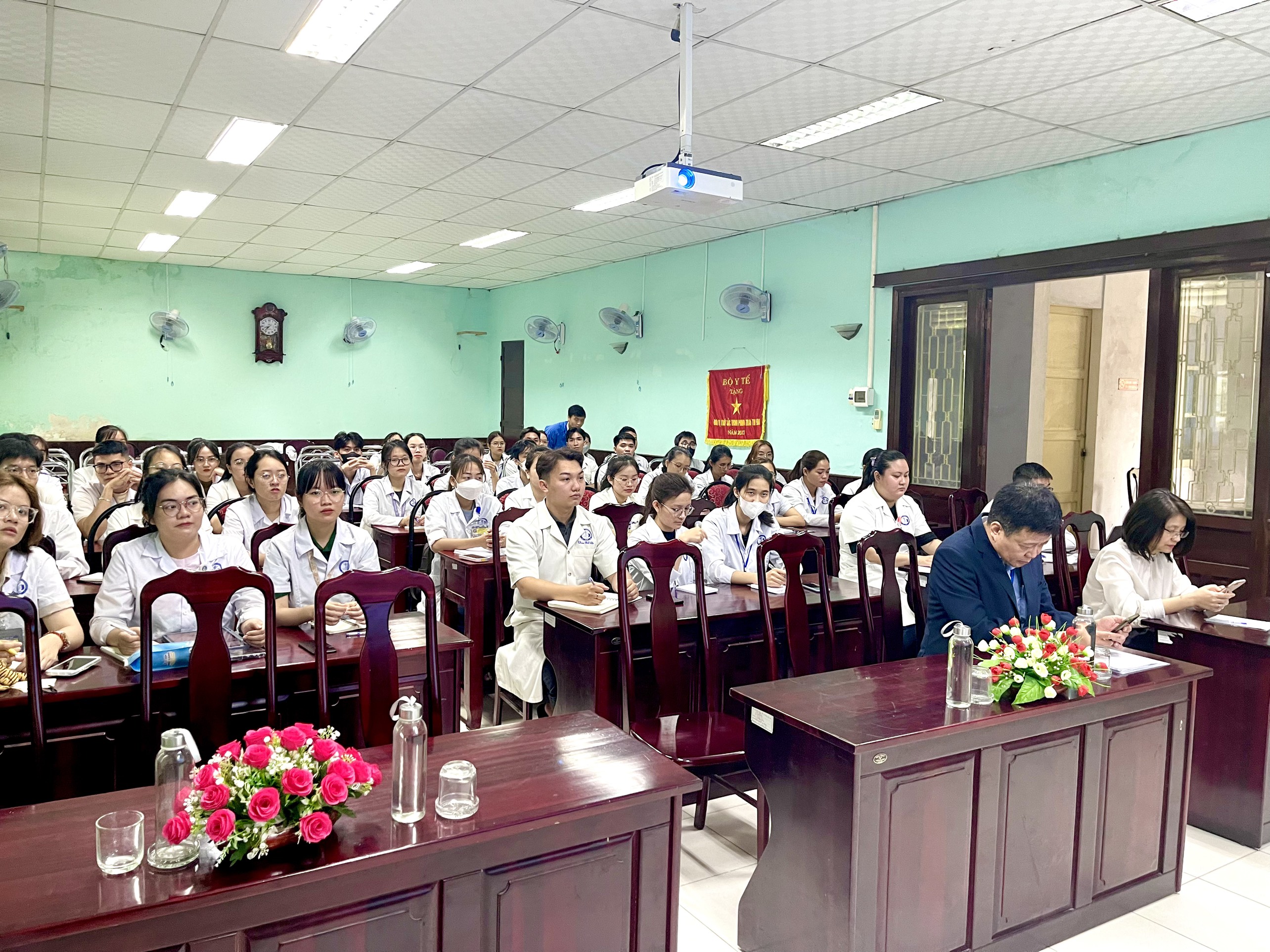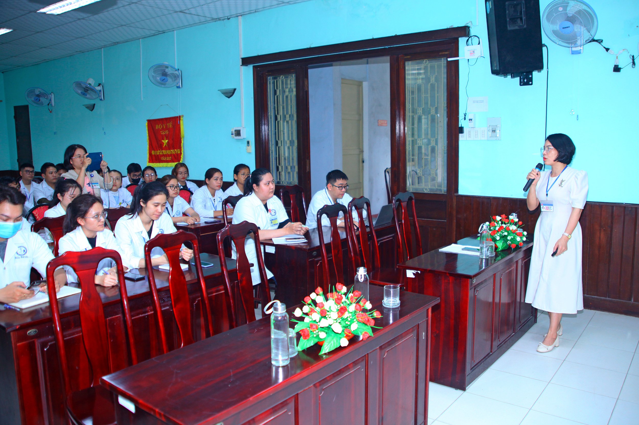 Sinh viên Trường Đại học Y Dược Huế thực tập cộng đồng tại Trung tâm Kiểm soát bệnh tật tỉnh.